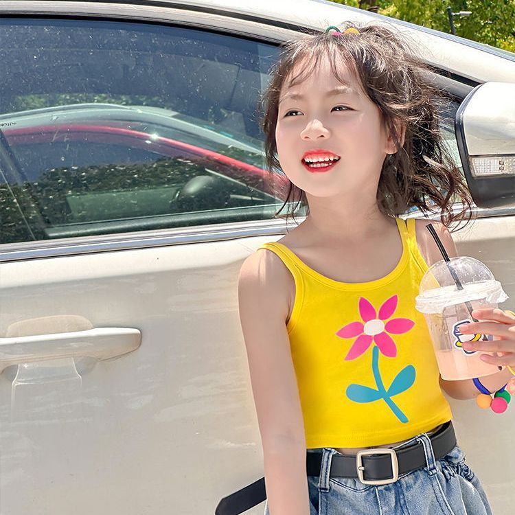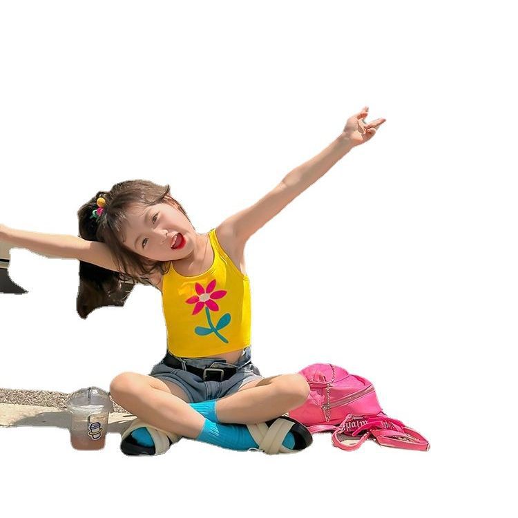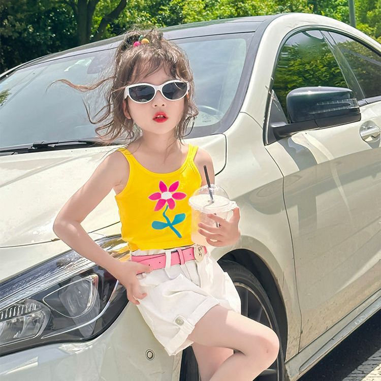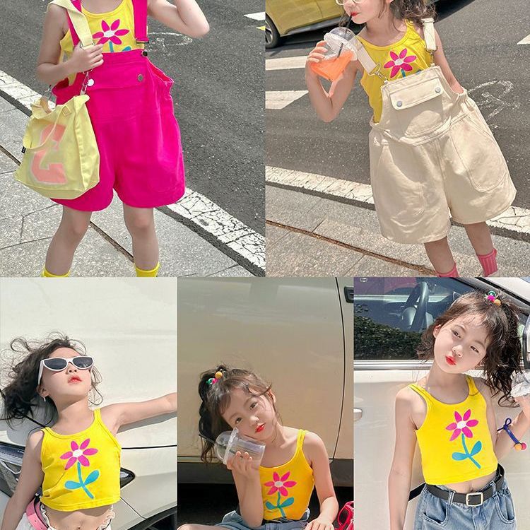 夏季女童背心吊带宝宝洋气儿童个性潮牌韩版花朵清新可爱网红上衣