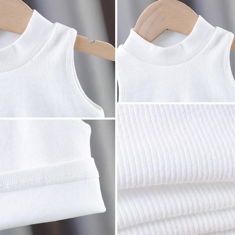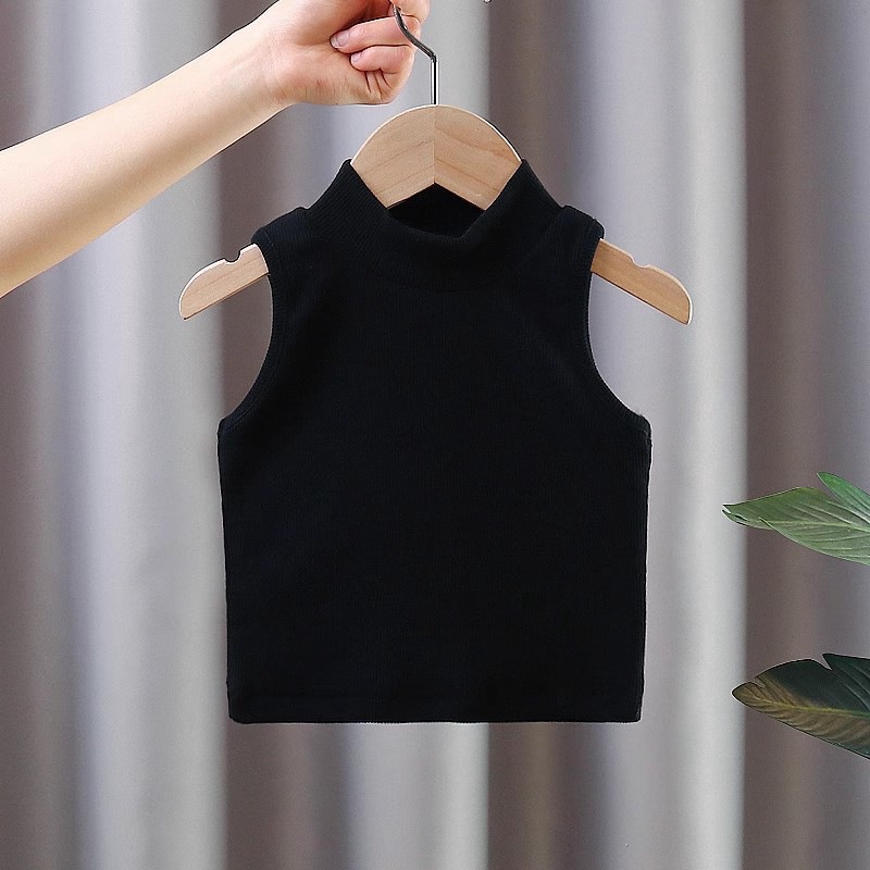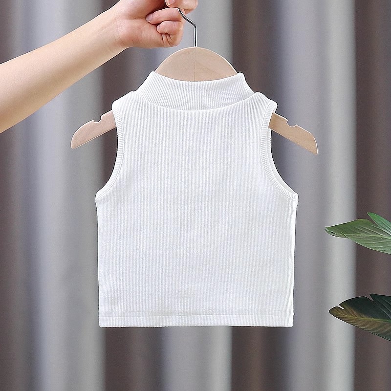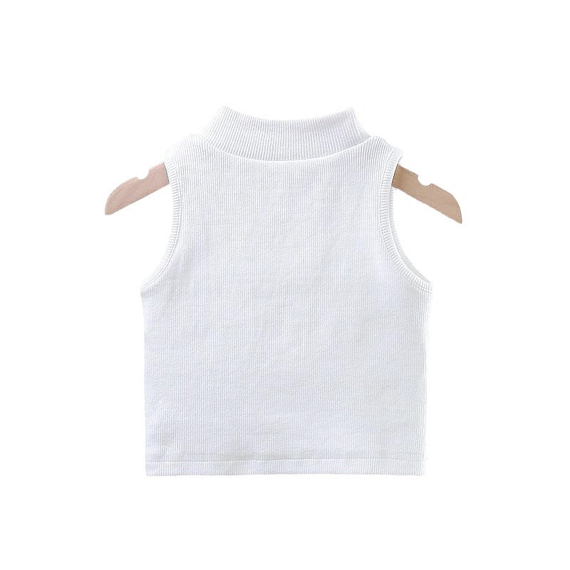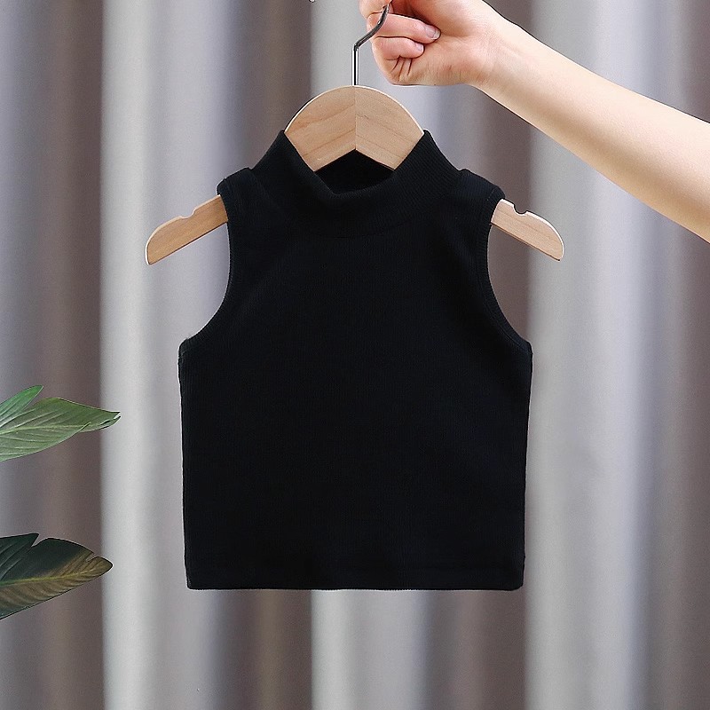 女童夏装背心宝宝洋气儿童个性潮牌韩版纯色螺纹坑条无袖T恤上衣
