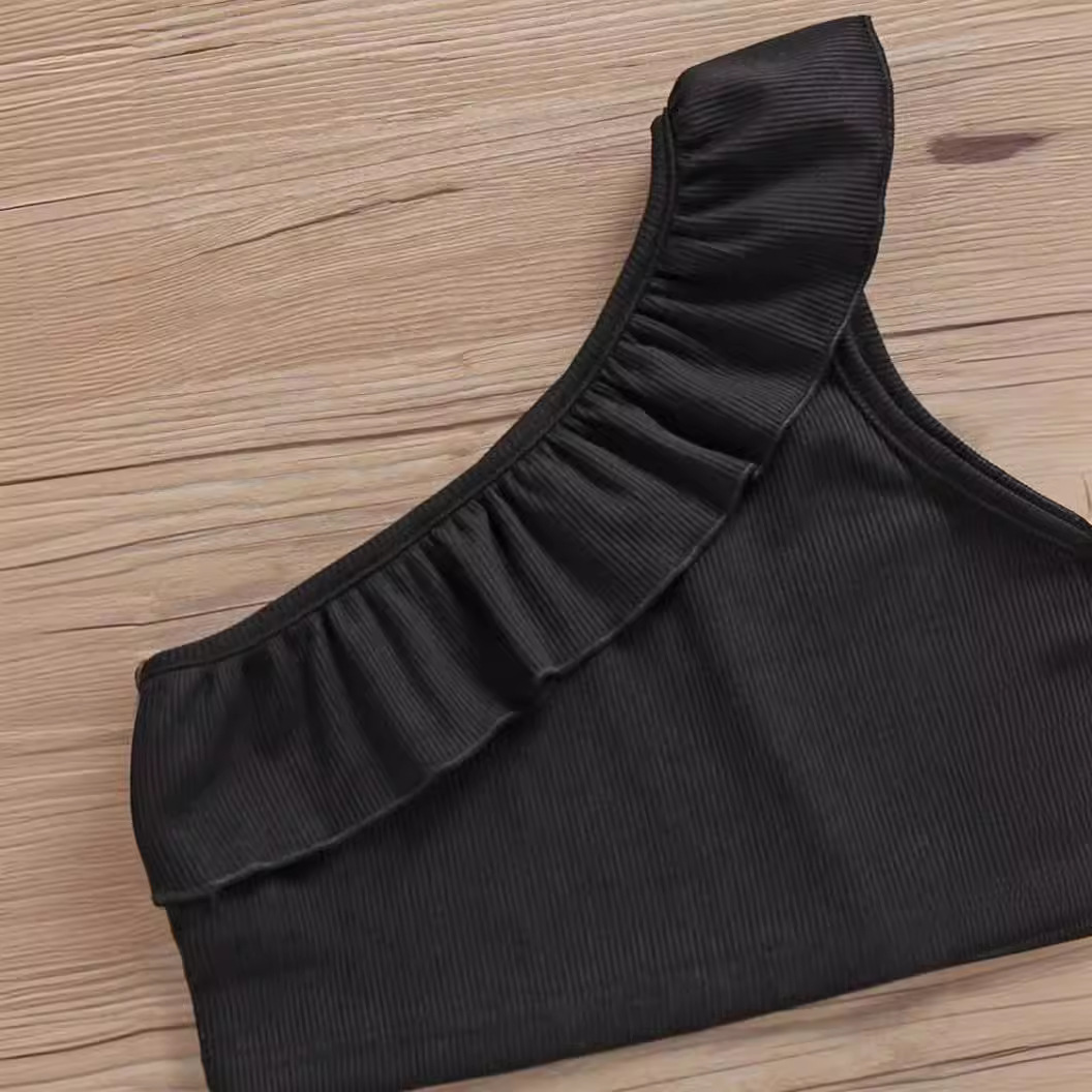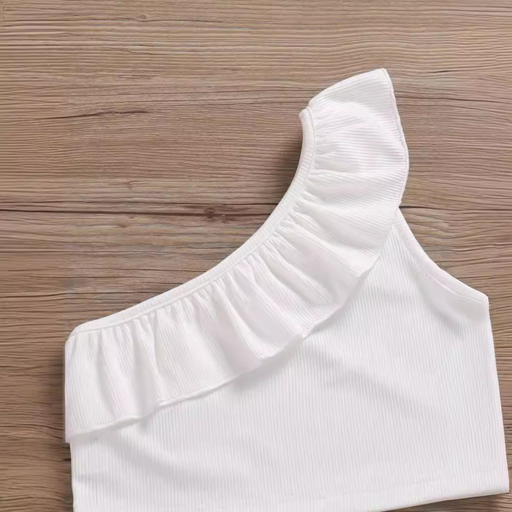女童夏装吊带宝宝洋气儿童个性潮韩版短款花边露肩不规则单肩背心