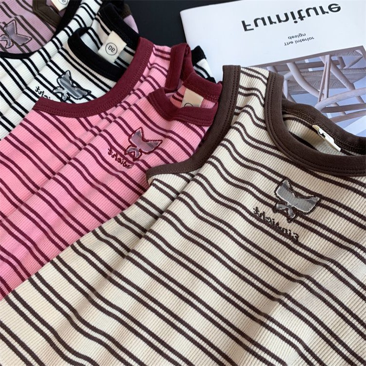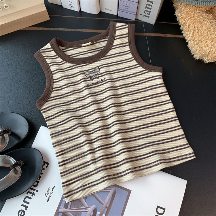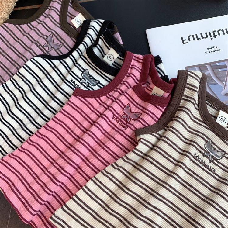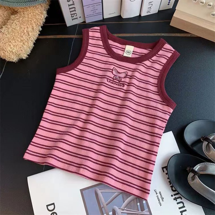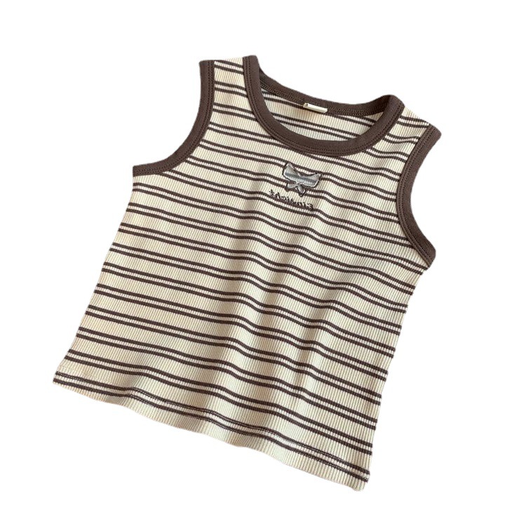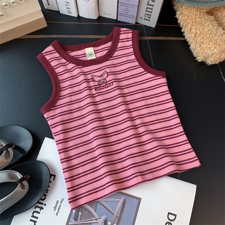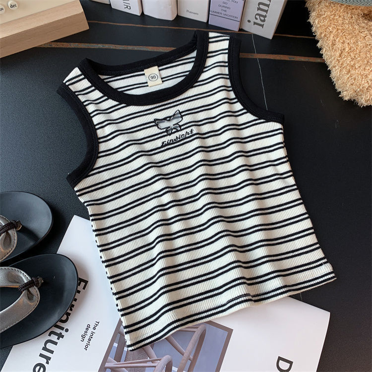 夏季女童装背心宝宝洋气儿童个性潮韩版网红条纹刺绣外穿内搭上衣