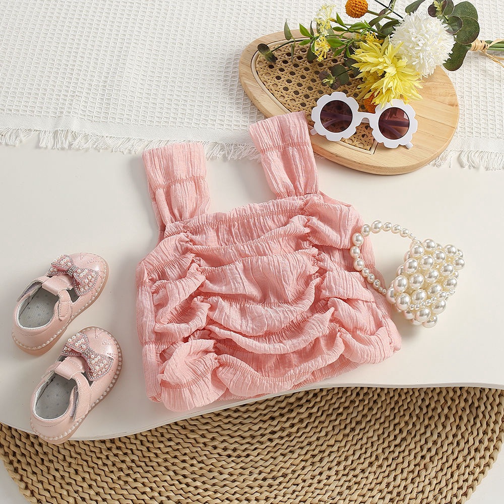女童夏装背心吊带宝宝洋气儿童个性潮牌网红韩版时髦褶皱外穿上衣