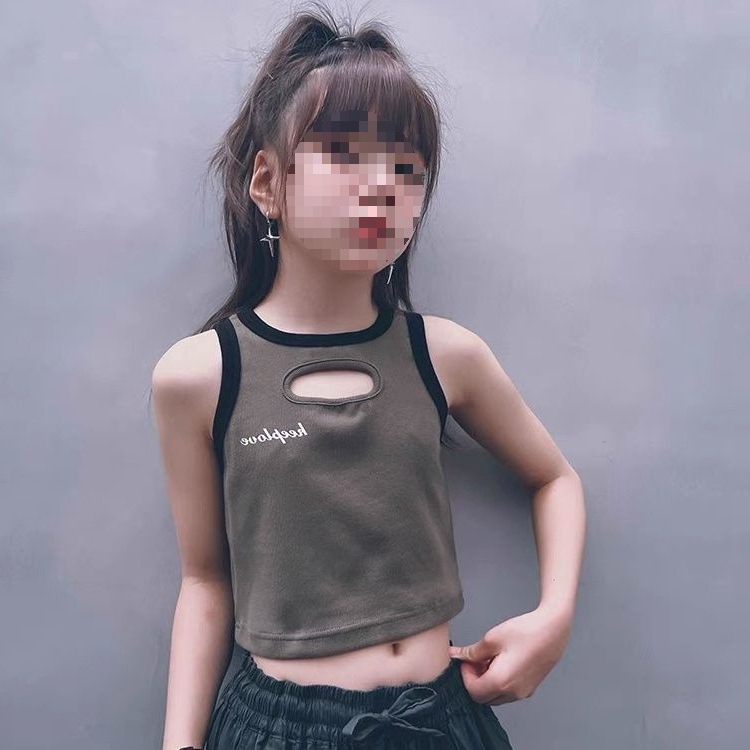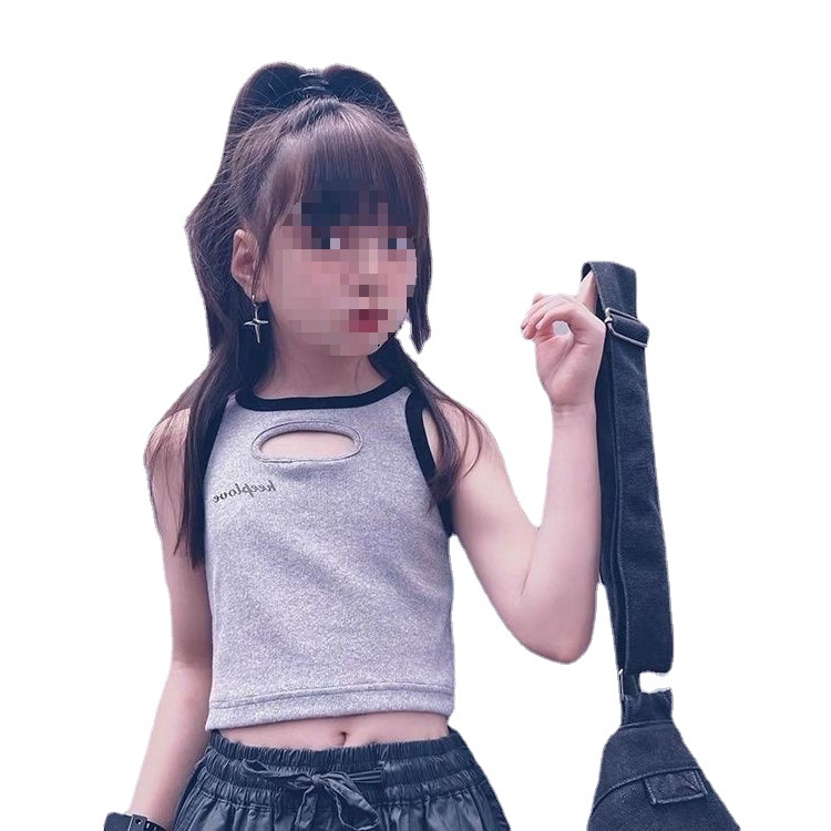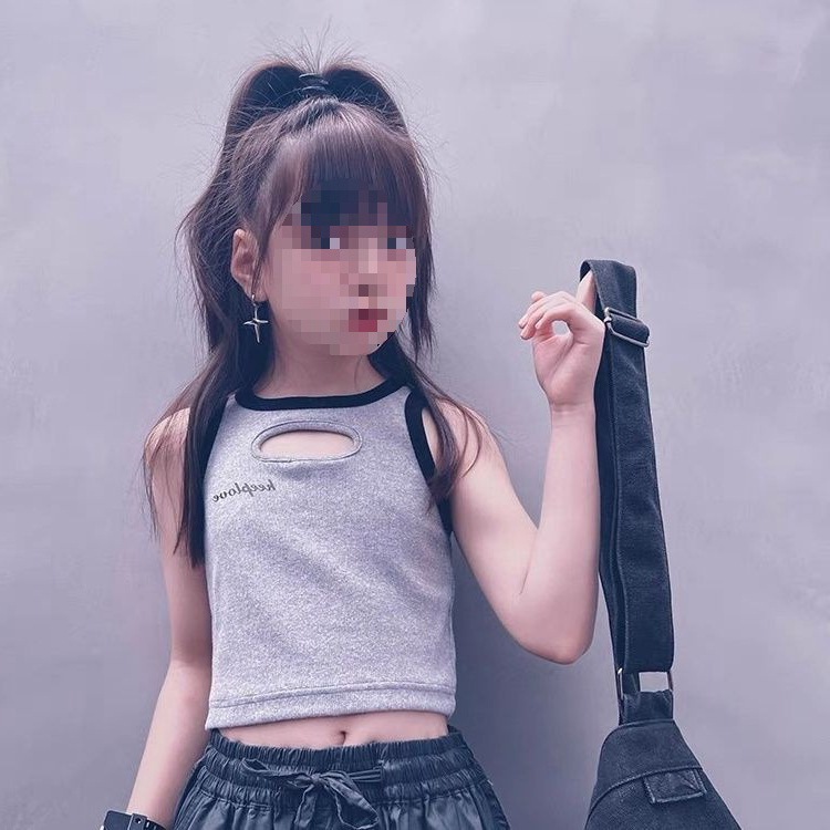 女童夏装背心吊带宝宝洋气儿童个性潮牌港风韩版镂空字母街舞上衣