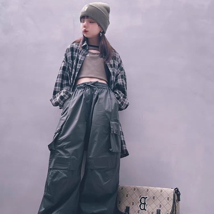 灰色美式工装裤女夏季新款高腰宽松直筒休闲风户外登山速干运动裤
