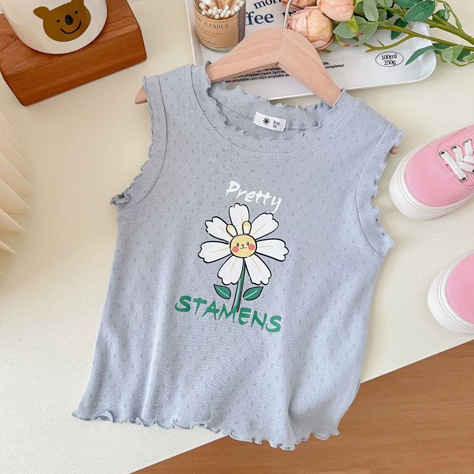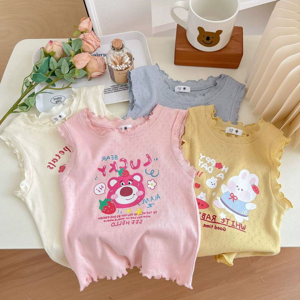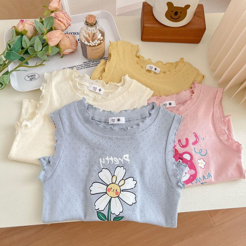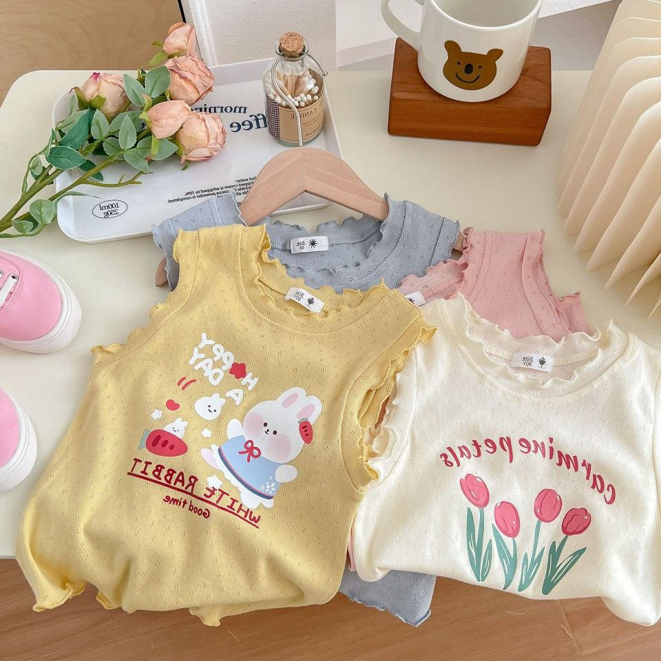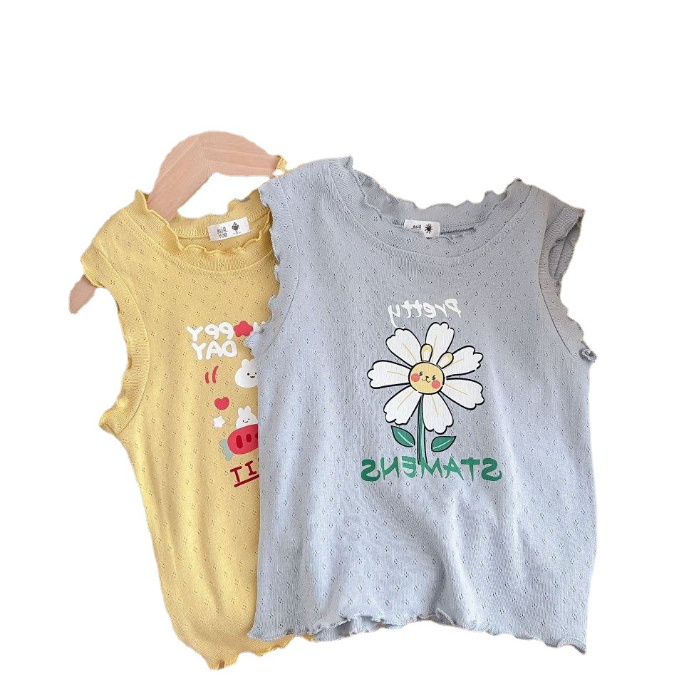 夏季女童背心T恤宝宝洋气儿童个性潮韩版可爱卡通木耳边外穿上衣