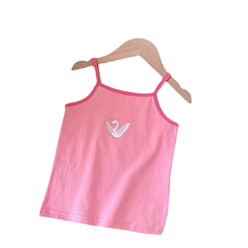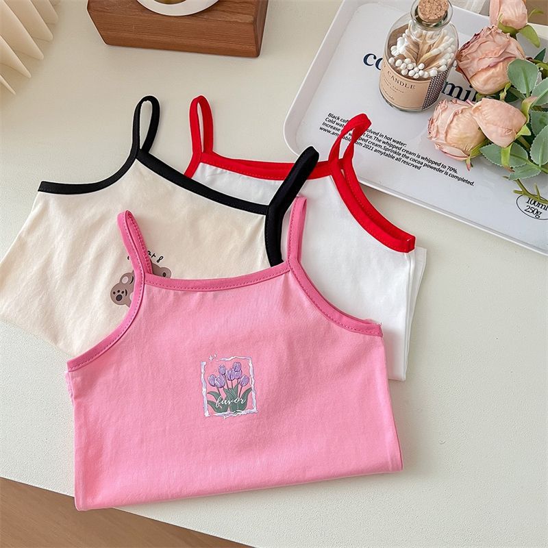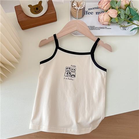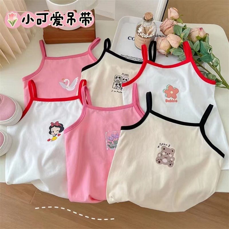 夏季女童背心吊带宝宝洋气儿童个性潮牌韩版花朵拼色卡通内搭外穿