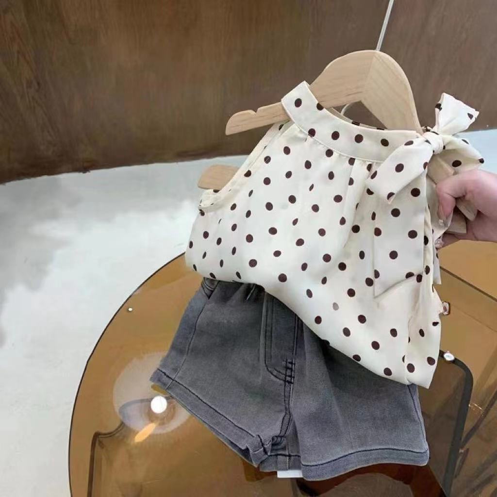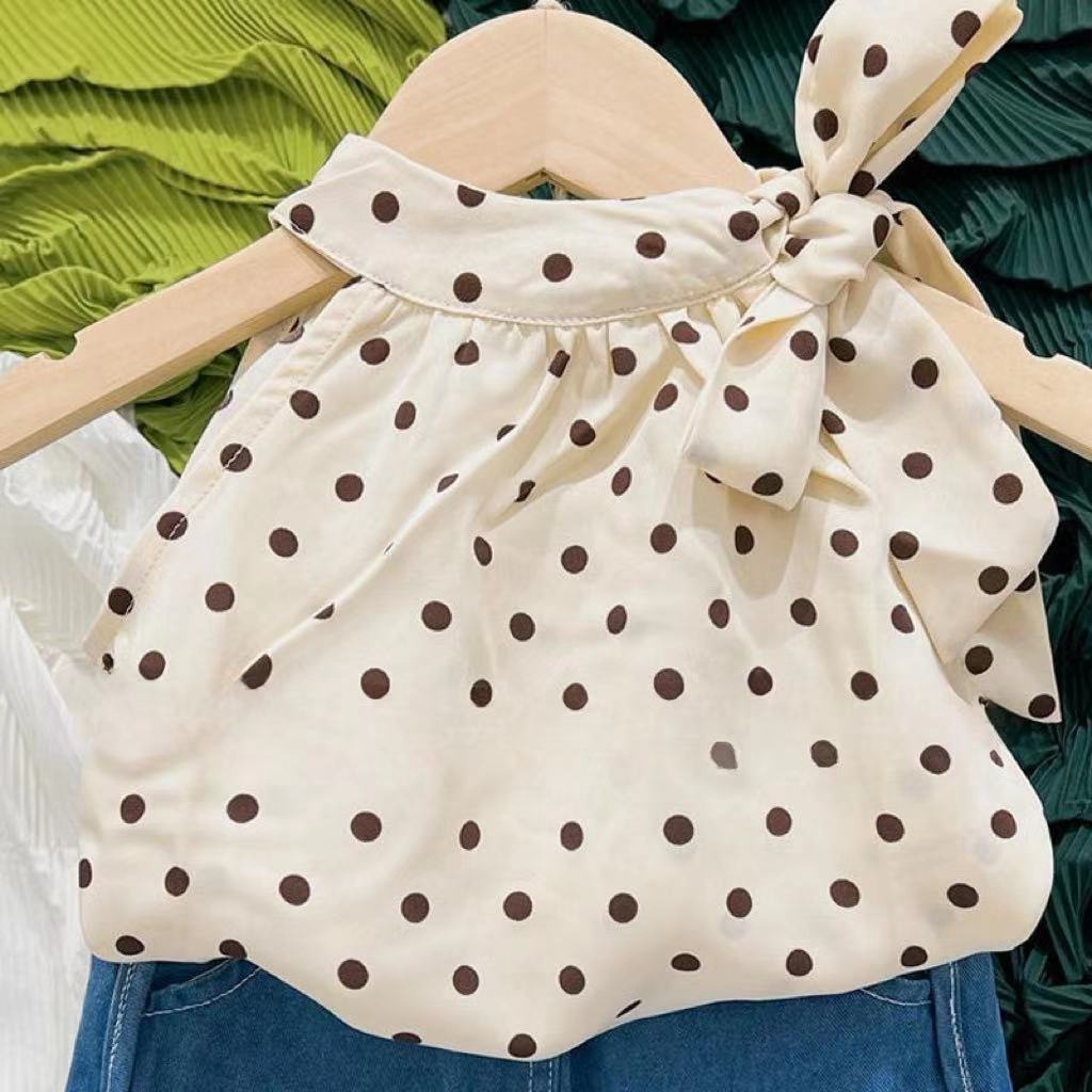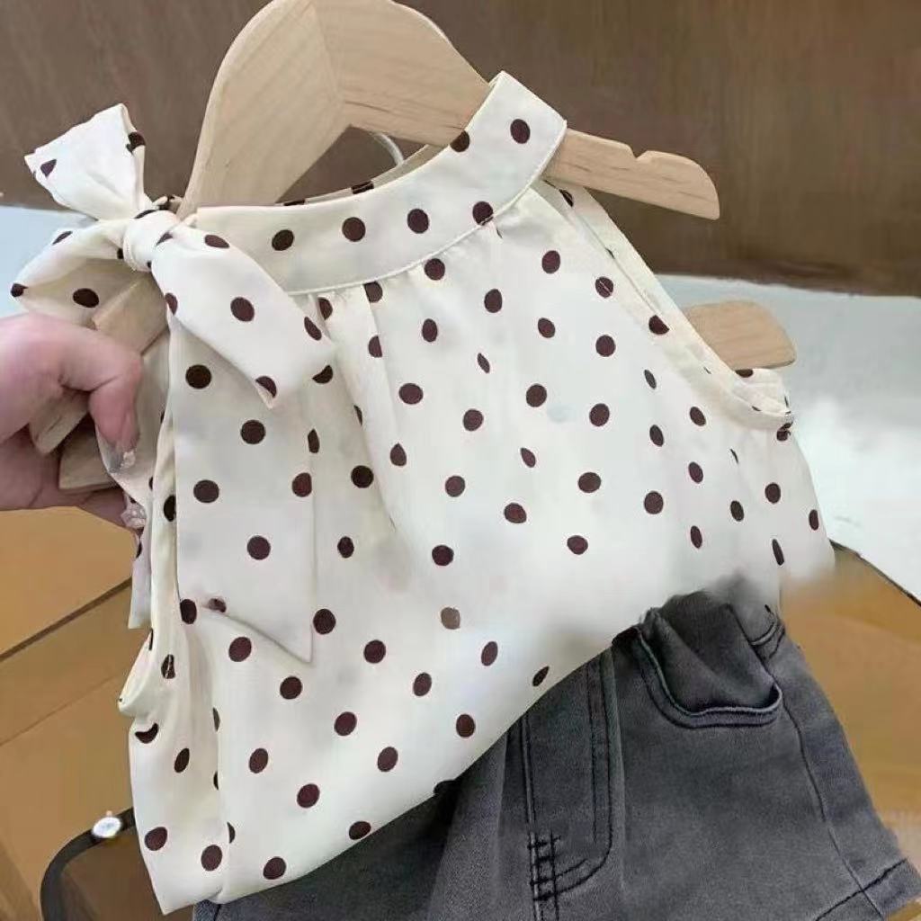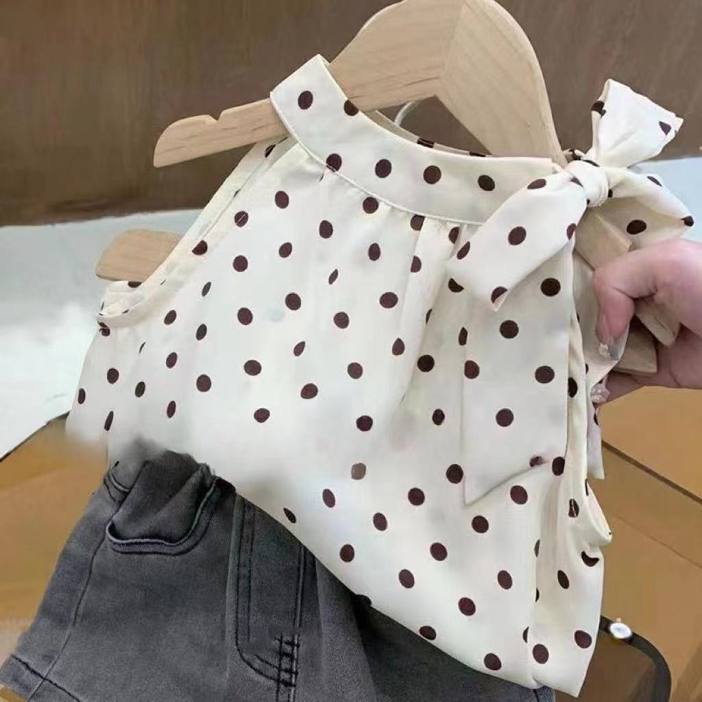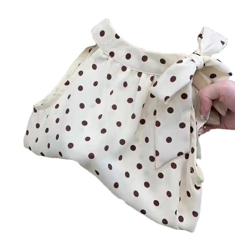 女童夏装背心吊带宝宝洋气儿童个性潮网红韩版波点挂脖雪纺娃娃衫