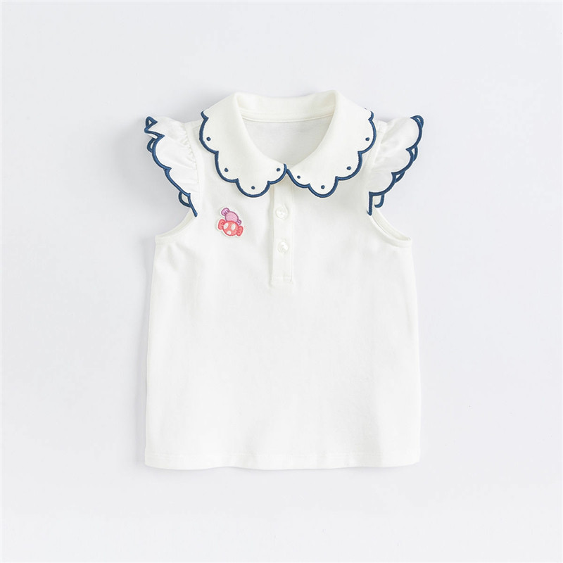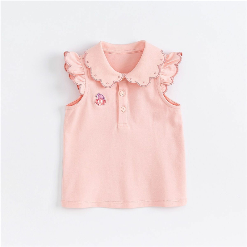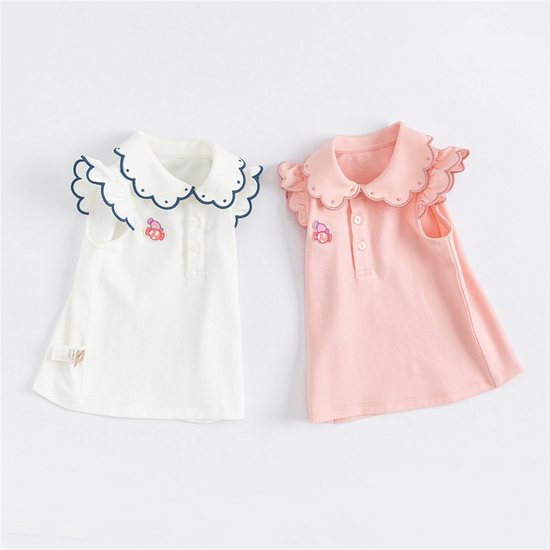 女童夏装背心T恤宝宝洋气儿童个性潮韩版娃娃领花边可爱时髦上衣