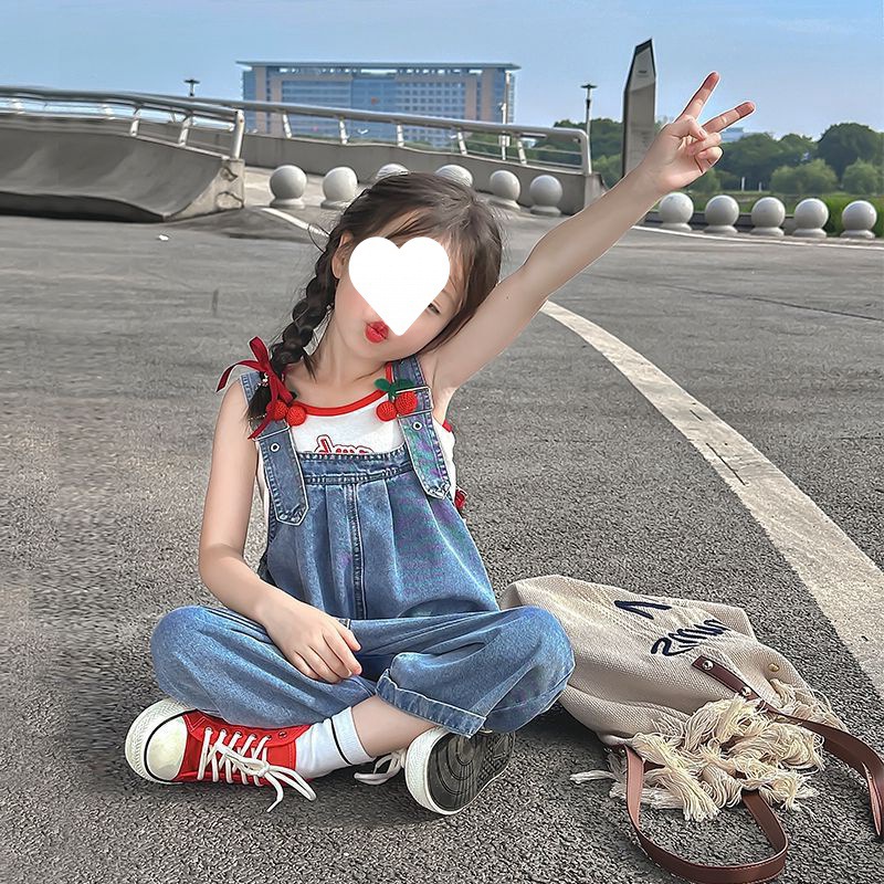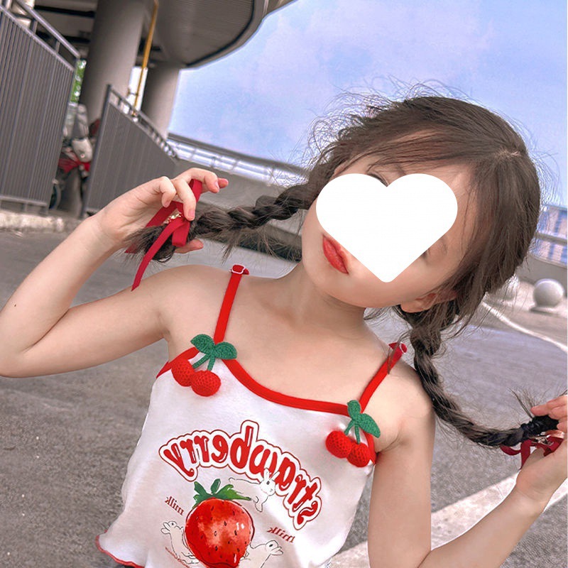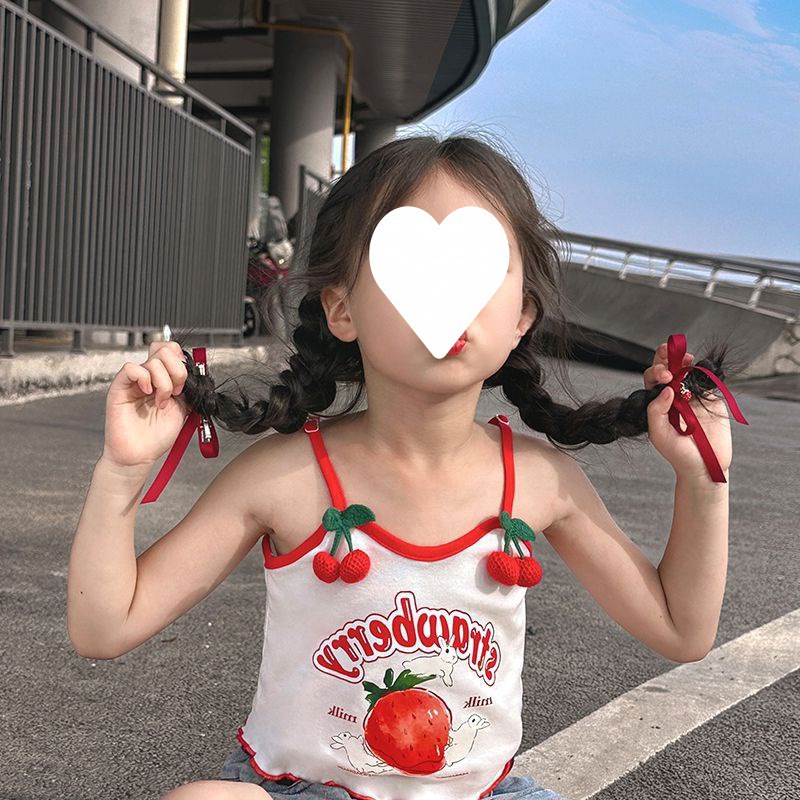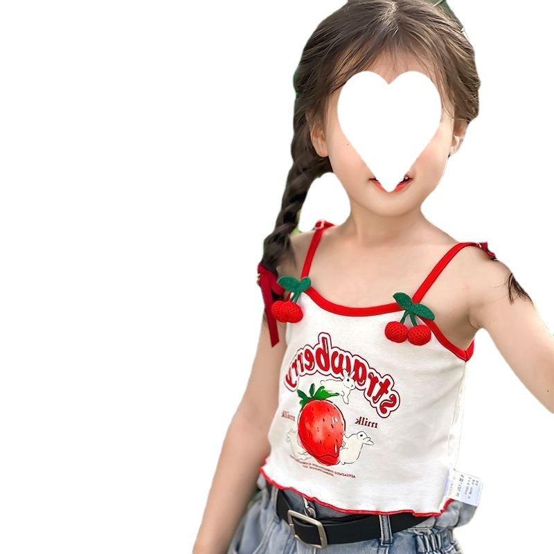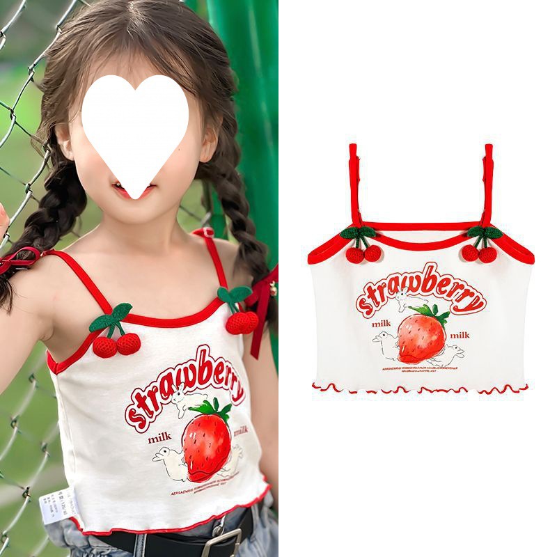 女童夏装背心吊带宝宝洋气儿童个性潮牌清新拼色草莓樱桃网红上衣