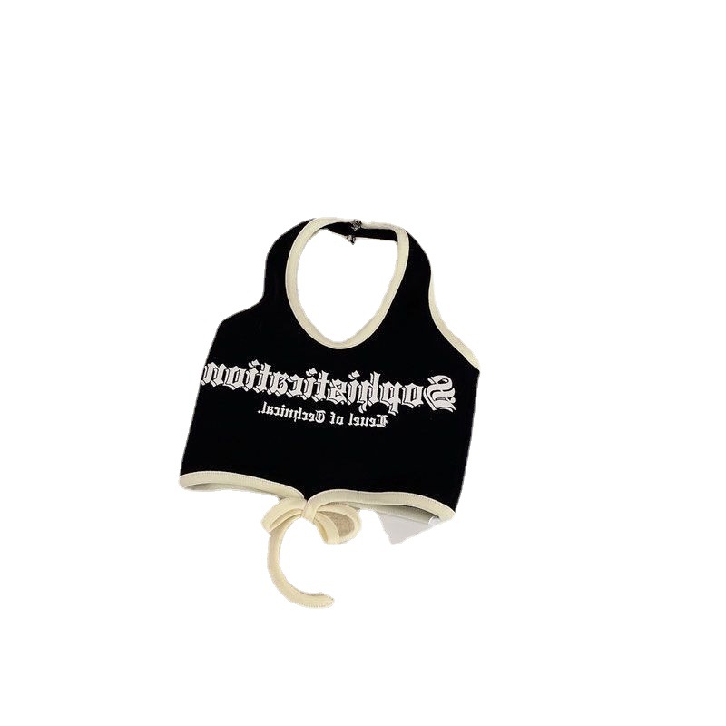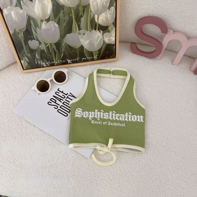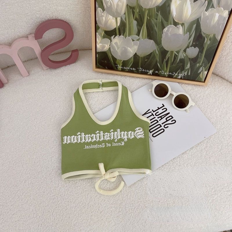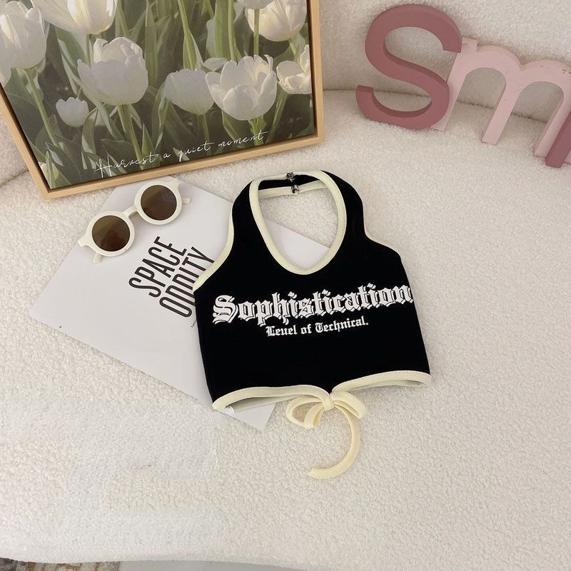 女童夏装背心吊带宝宝洋气儿童个性潮牌韩版拼色字母短裤露背挂脖