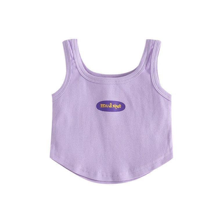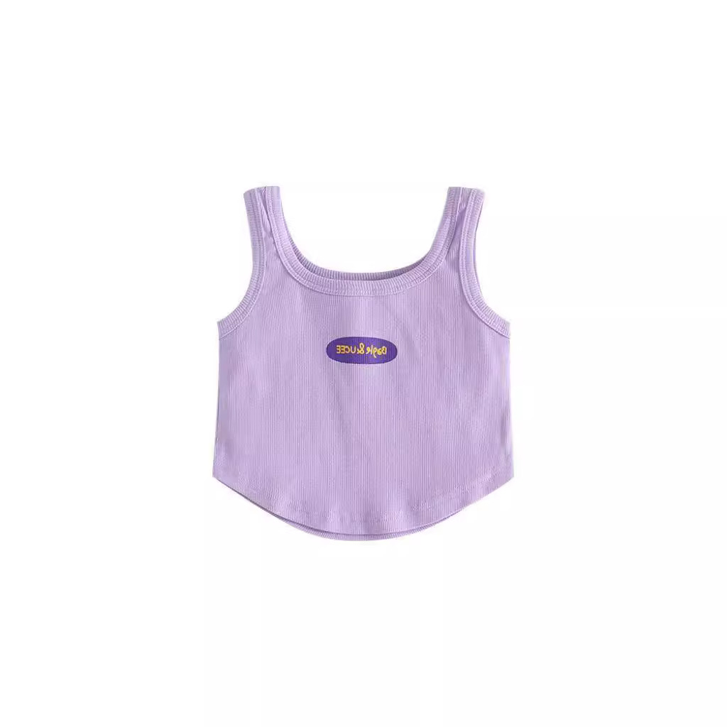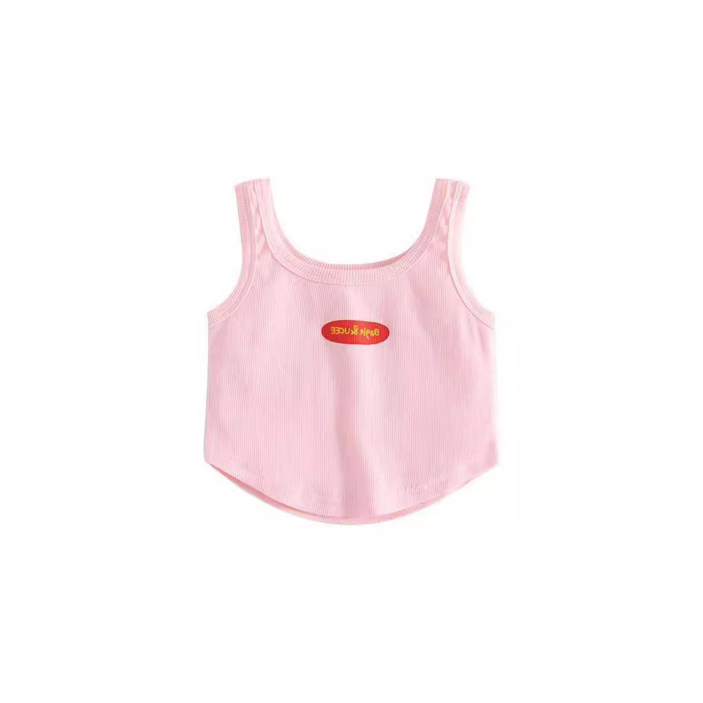 女童夏装背心吊带宝宝洋气儿童个性潮牌糖果色字母不规则网红上衣