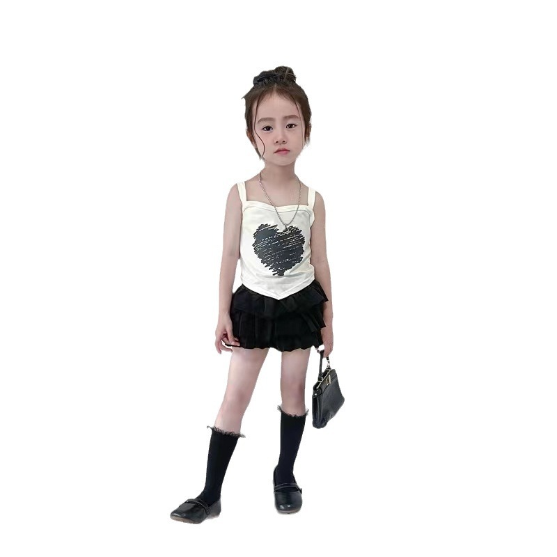 女童夏装背心吊带宝宝洋气儿童个性潮韩版爱心不规则露背外穿内搭