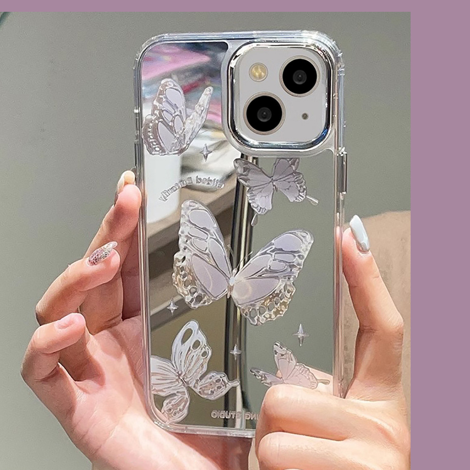 ins抽象蝴蝶苹果14ProMax镜面手机壳iPhone13简约12/11高级