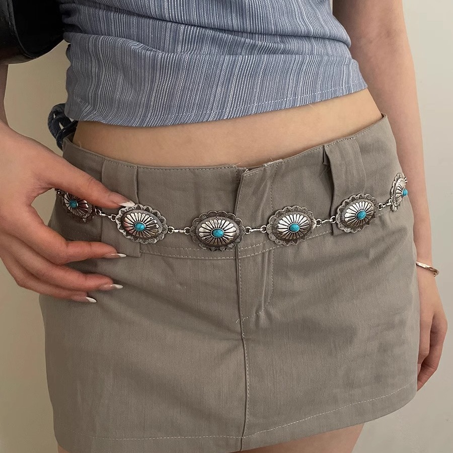 复古民族风腰带女棕色印花设计感搭配裙子牛仔裤皮带质感金属腰链