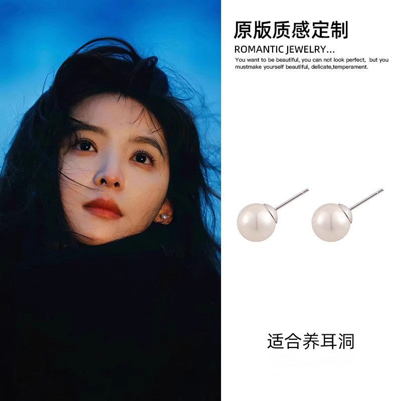 章若楠同款925银针珍珠耳钉养耳洞睡觉免摘耳环2025新款大气耳饰
