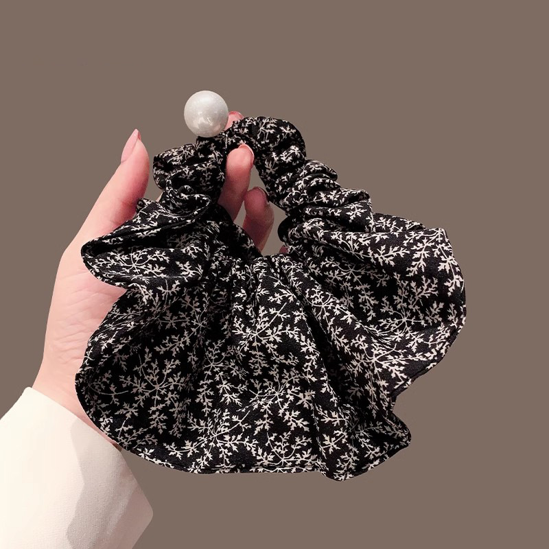 韩国发饰2025新款黑色棉麻布艺碎花大肠发圈马尾发绳丸子皮筋发饰