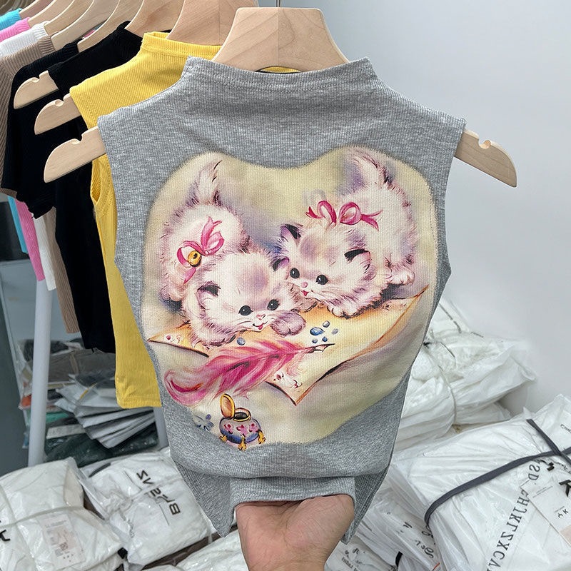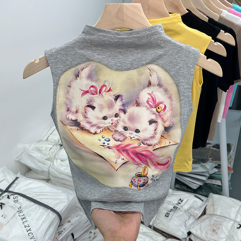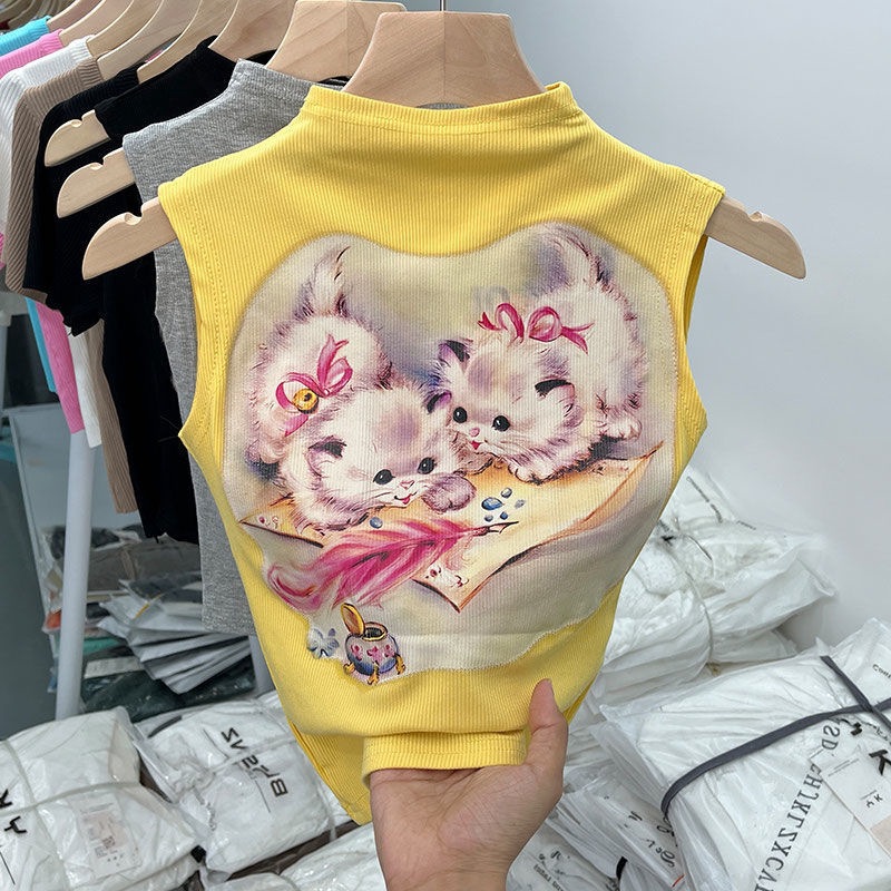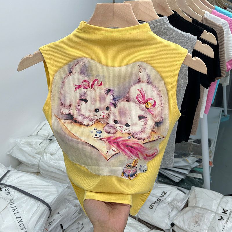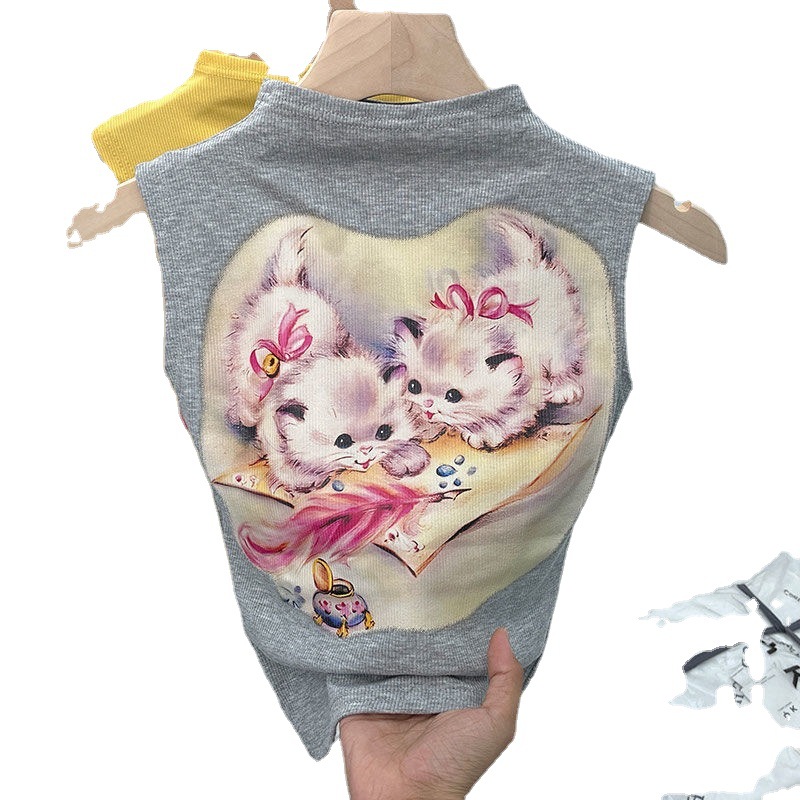女童夏装背心宝宝洋气儿童个性潮牌韩版卡通印花网红无袖T恤上衣