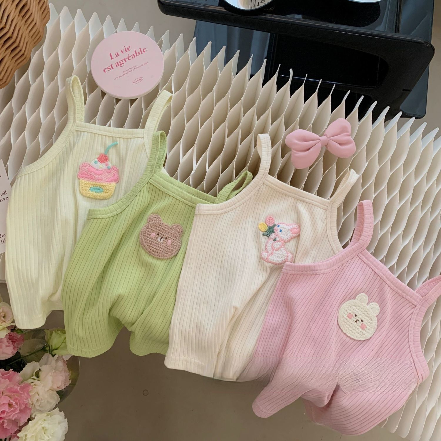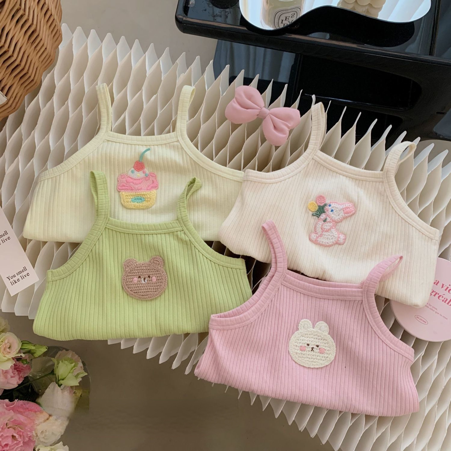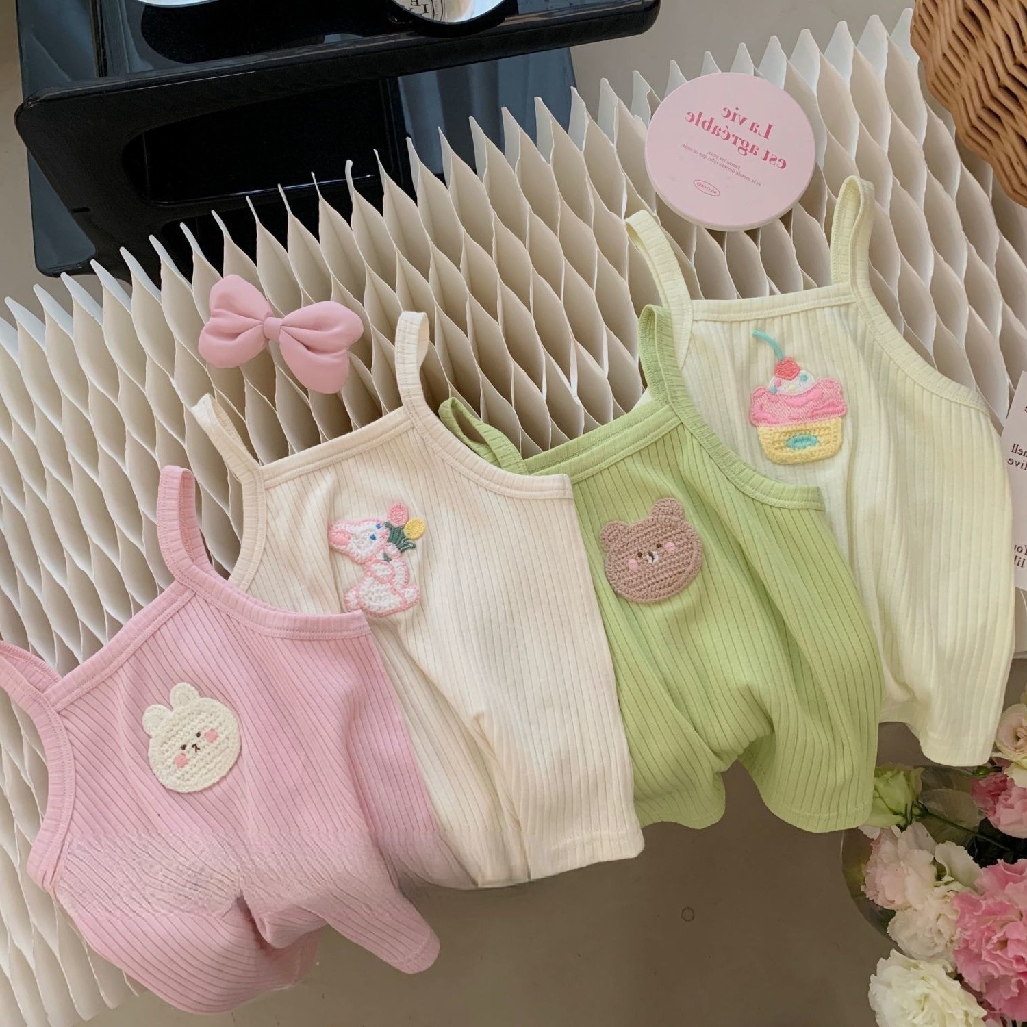 女童夏装背心吊带宝宝洋气儿童个性潮牌多巴胺女孩糖果色可爱卡通