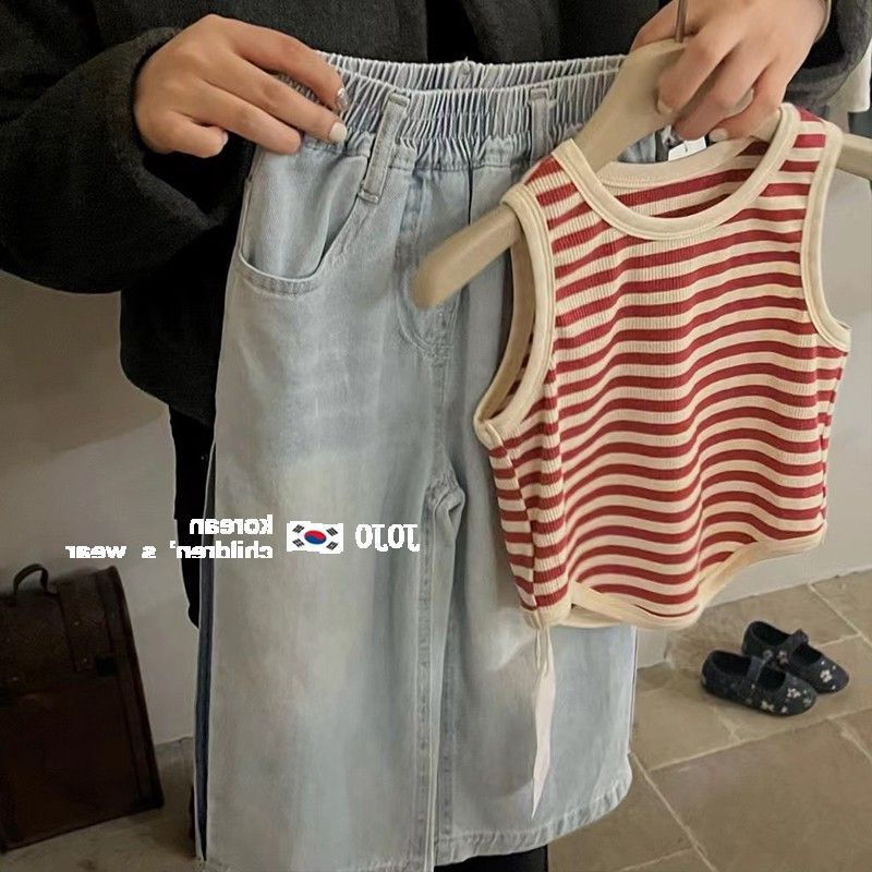 女童夏装背心T恤宝宝洋气儿童个性潮牌韩版拼色条纹网红时髦上衣