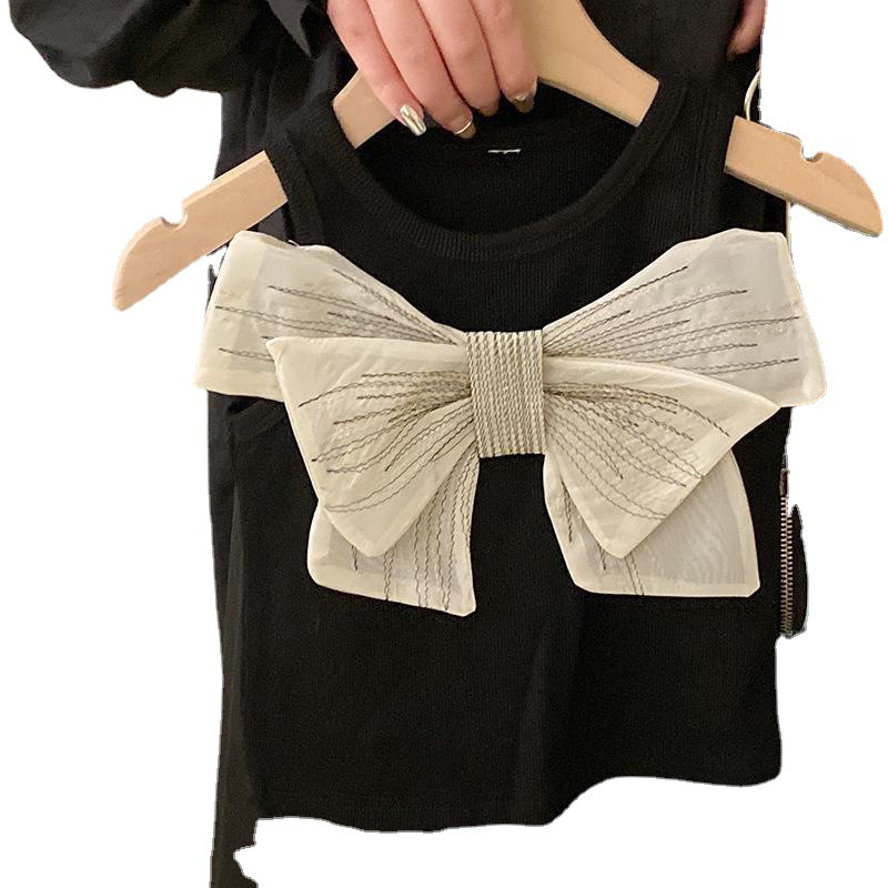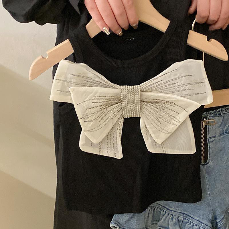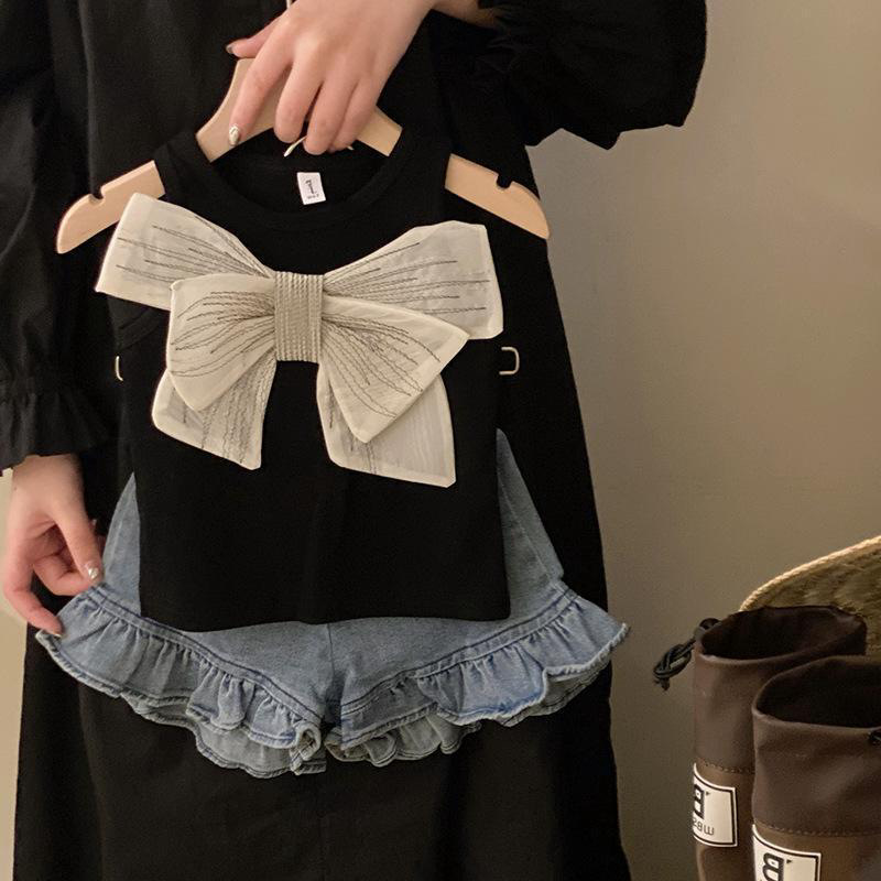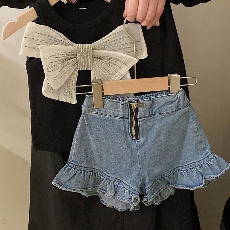 夏季女童套装宝宝洋气儿童个性潮韩版蝴蝶结背心吊带花边牛仔短裤