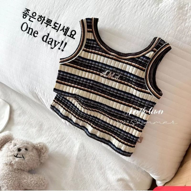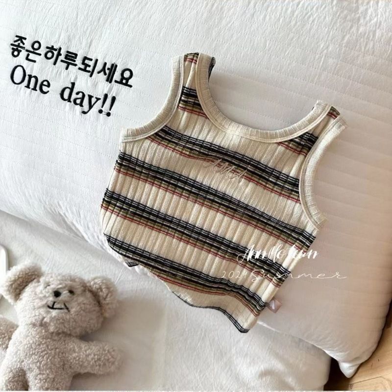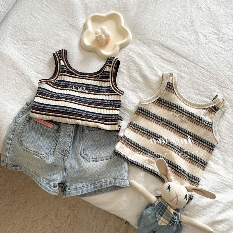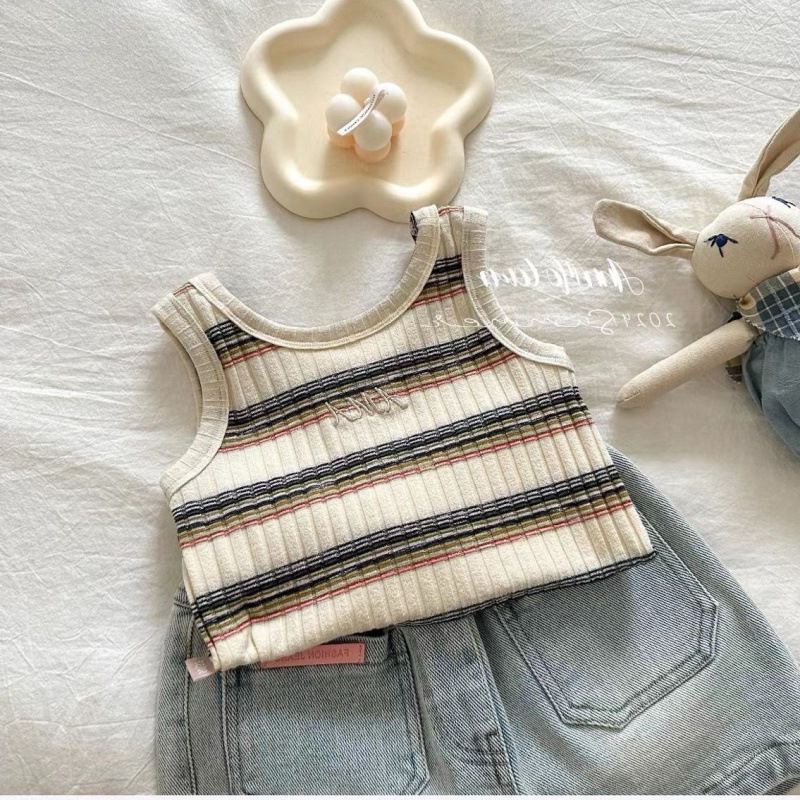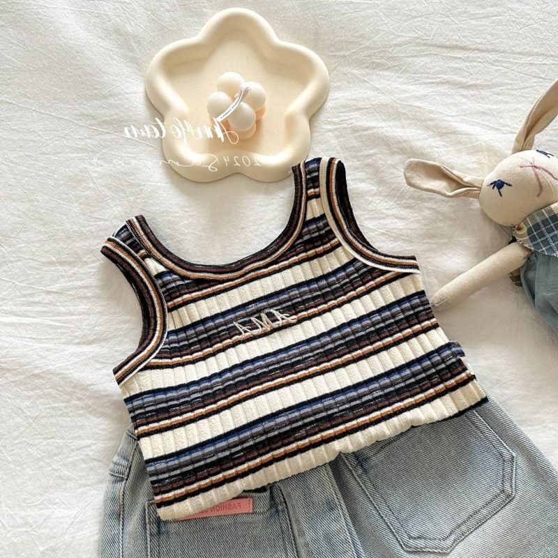 男女童夏装背心吊带宝宝洋气儿童个性潮韩版时髦拼色条纹内搭外穿