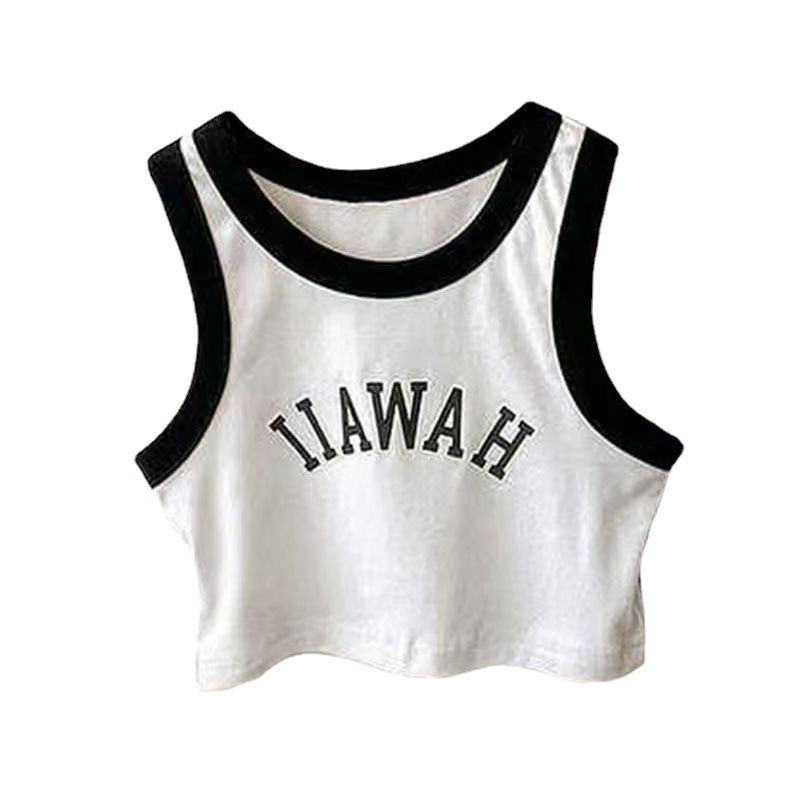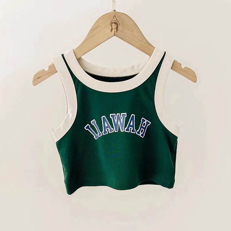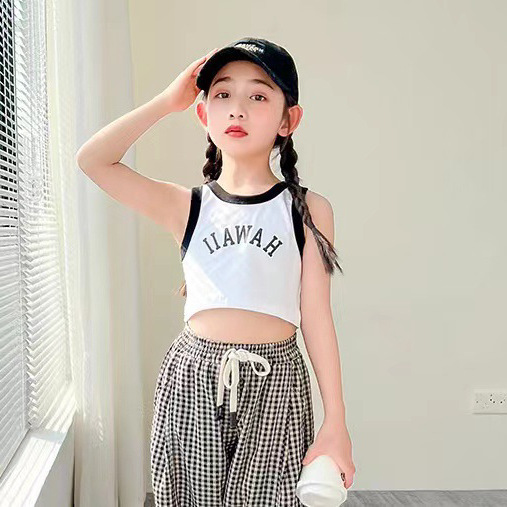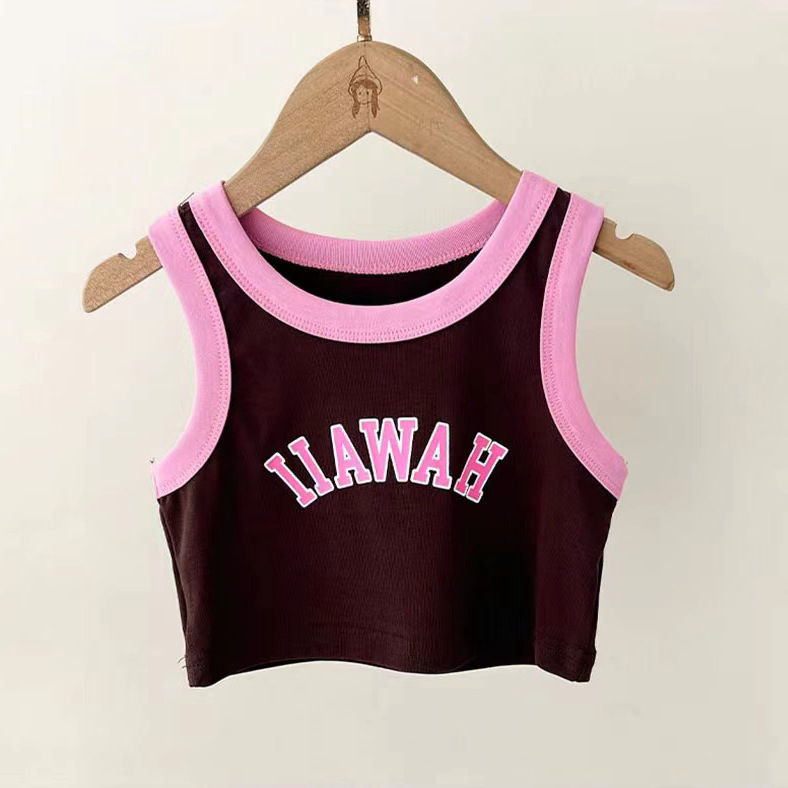 夏季女童背心吊带宝宝洋气儿童个性潮牌韩版短款拼色字母街舞上衣