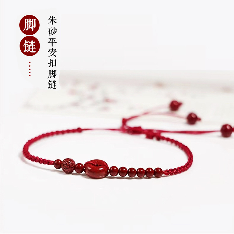 原矿朱砂手工编织本命年红绳脚链手工紫金砂脚绳中国风女情侣礼物