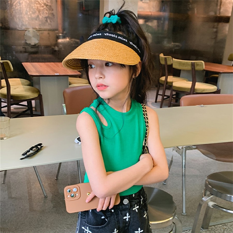 女童夏装背心上衣宝宝洋气儿童个性潮牌韩版网红字母印花无袖T恤