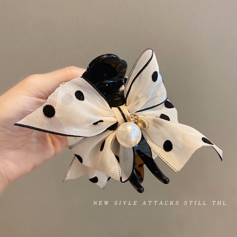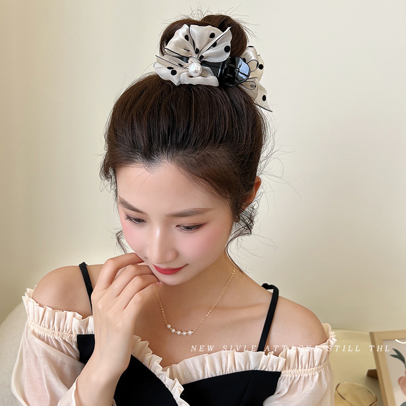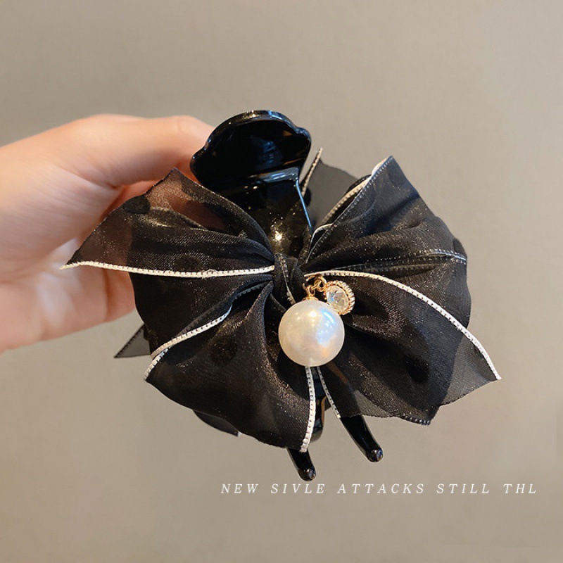 韩国蝴蝶结珍珠发夹女后脑勺抓夹气质丸子头鲨鱼夹子网红发卡头饰