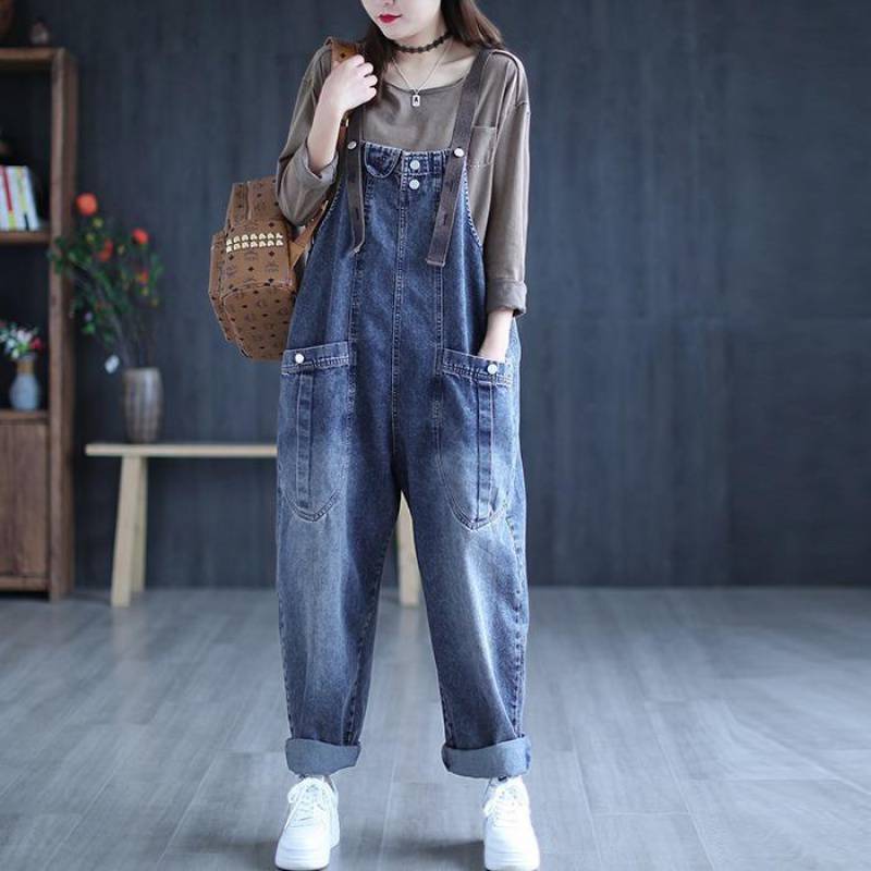 吊带长裤文艺春夏牛仔背带裤女复古大码宽松时尚休闲