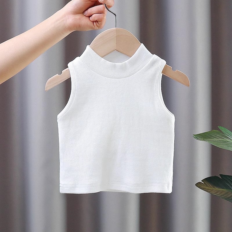 女童夏装背心宝宝洋气儿童个性潮牌韩版纯色螺纹坑条无袖T恤上衣