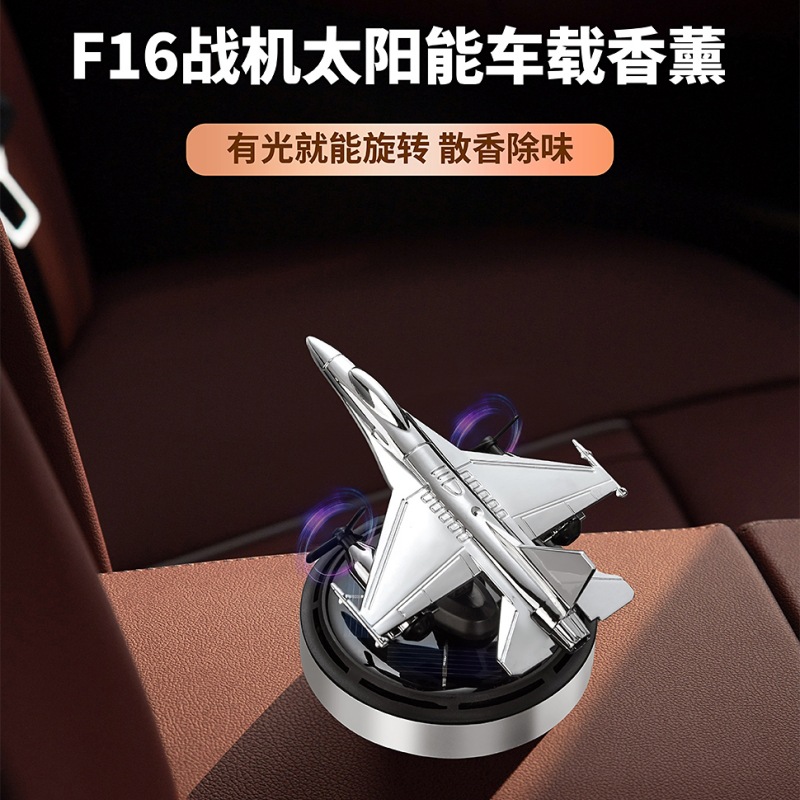 太阳能飞机F16骁龙车载香薰遇光旋转持久散香汽车摆件
