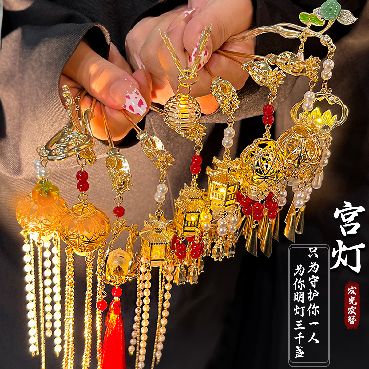 发光发簪高级感摆摊流苏复古头饰古风宫廷盘发发簪簪子