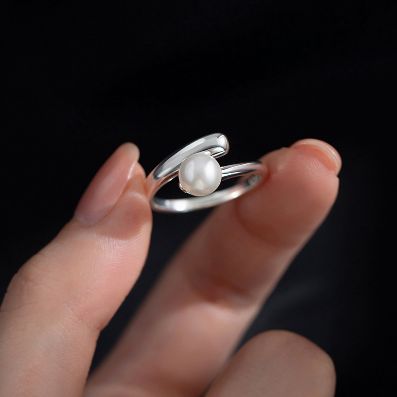 新款简约天然珍珠戒指戒指环感百搭女开口素圈食指戒情人节