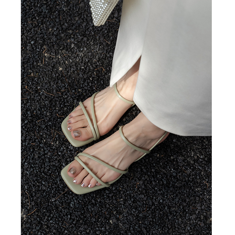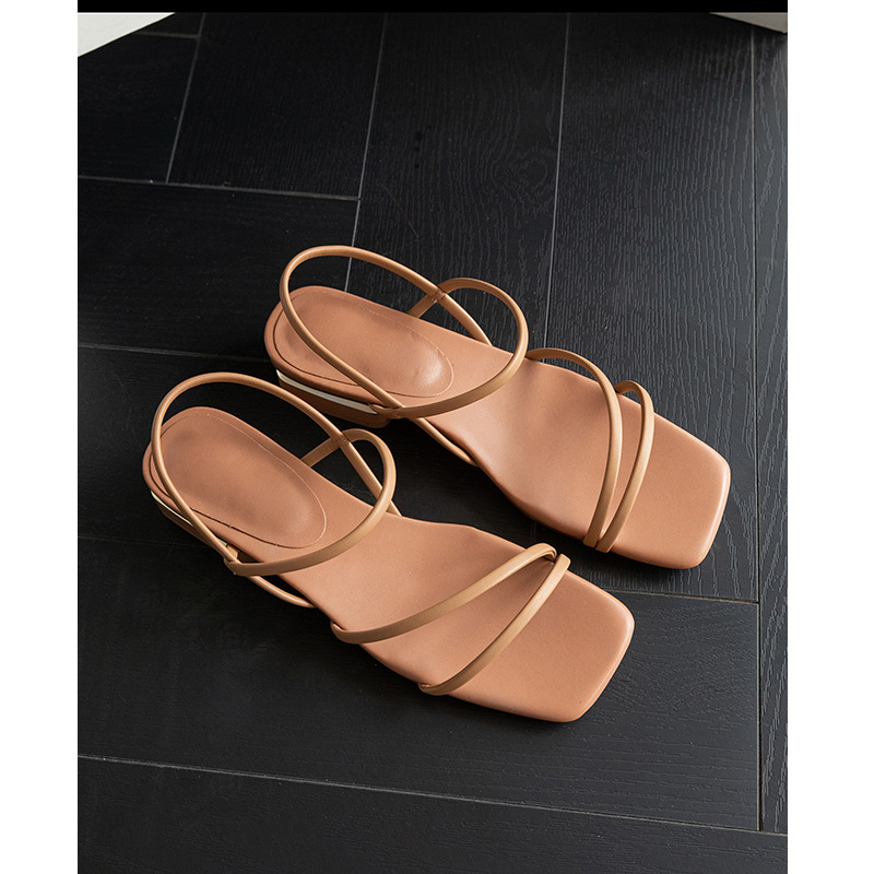 年新款法式晚风潮方头露趾一字带罗马细带低跟配裙子凉鞋女夏