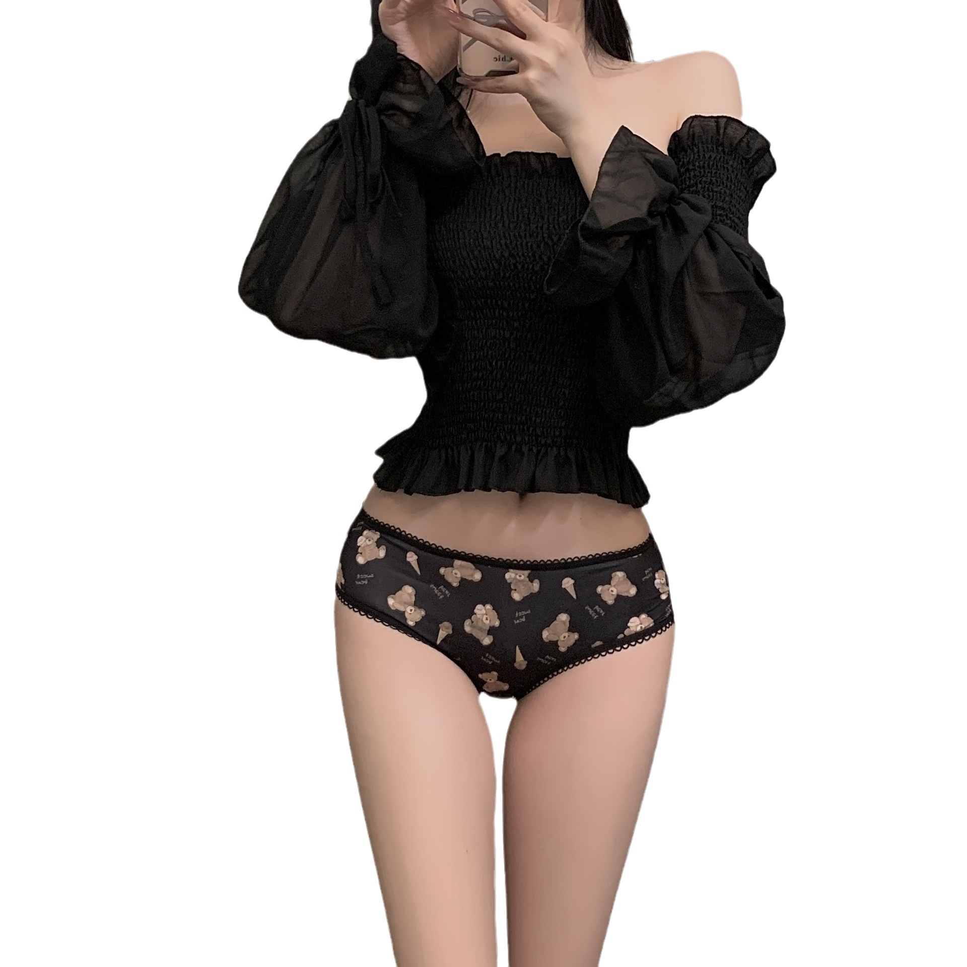 奢华透明性感卡通小熊丝滑柔软内裤女低腰三角裤网纱短裤速干蕾丝