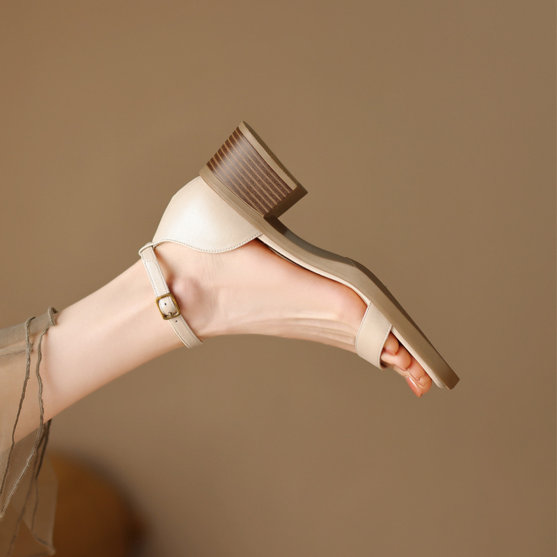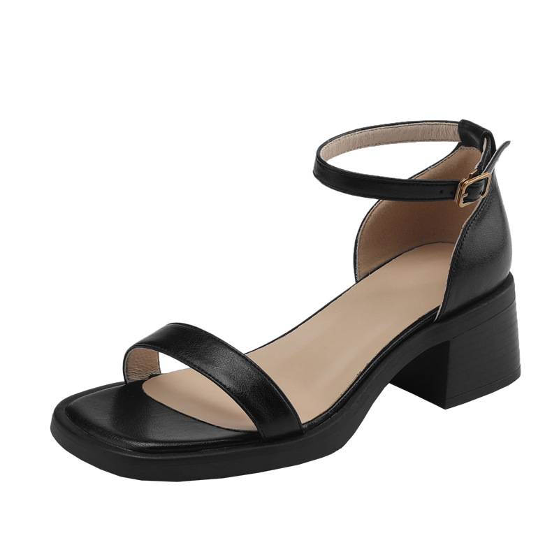 年新款女款夏季黑色简约百搭包跟粗跟一字带高跟凉鞋女夏