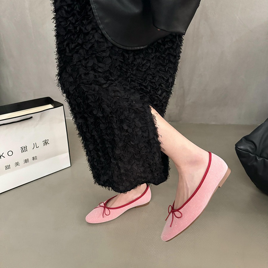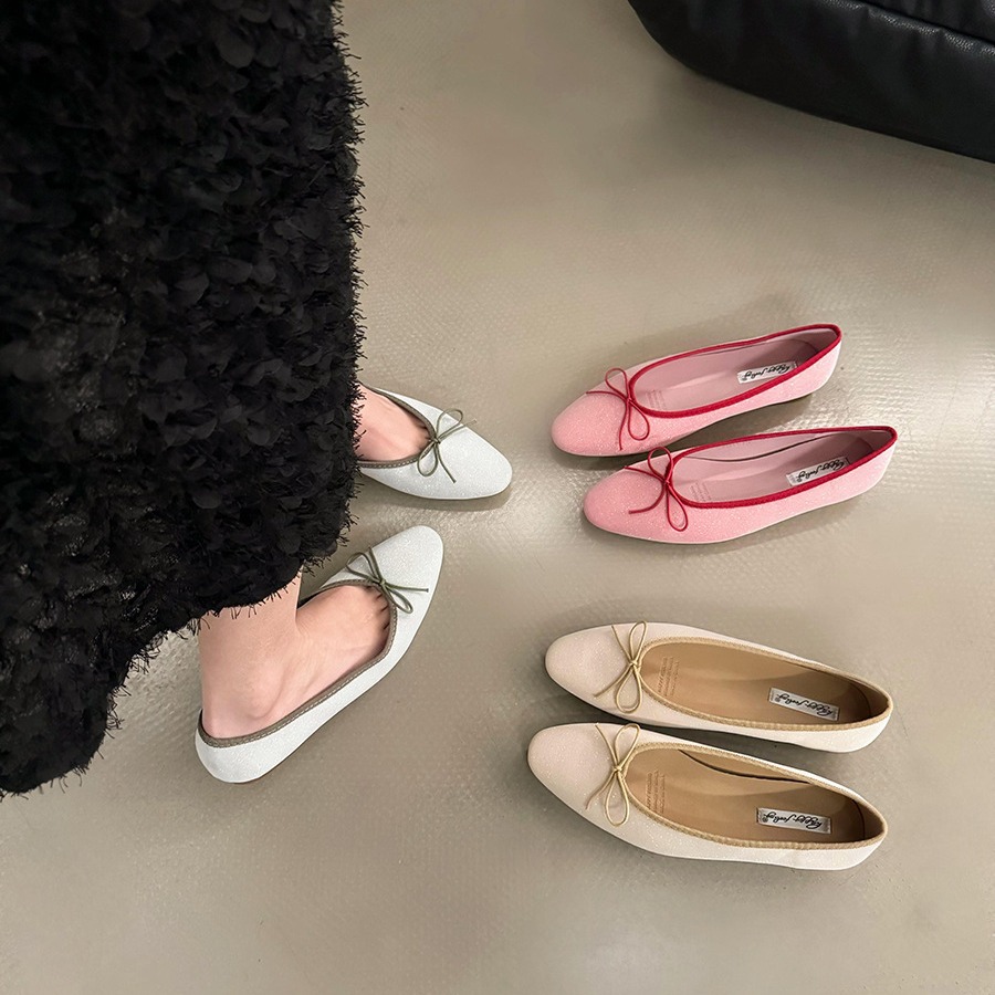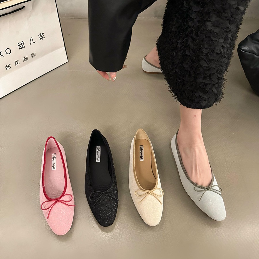 小众晚晚风蝴蝶结黑色单鞋女鞋子年新款春秋季法式温柔平底鞋