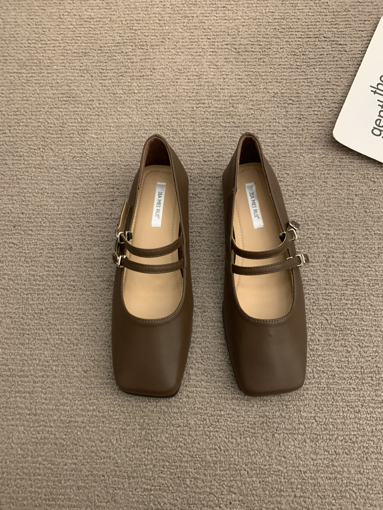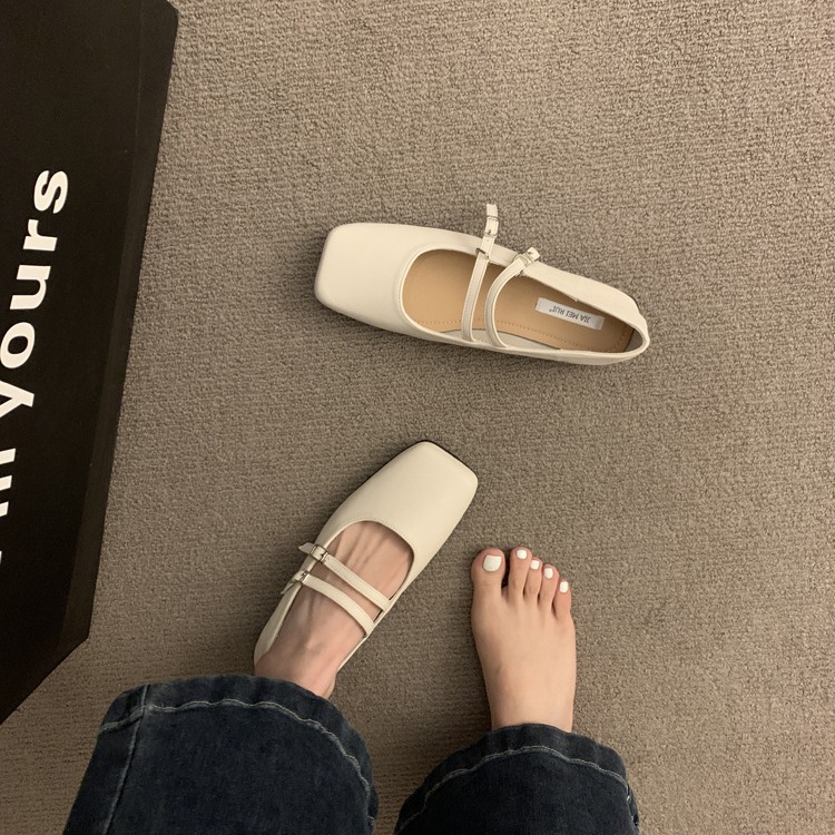 法式晚风黑色单鞋女平底春秋新款气质仙女通勤方头浅口玛丽珍