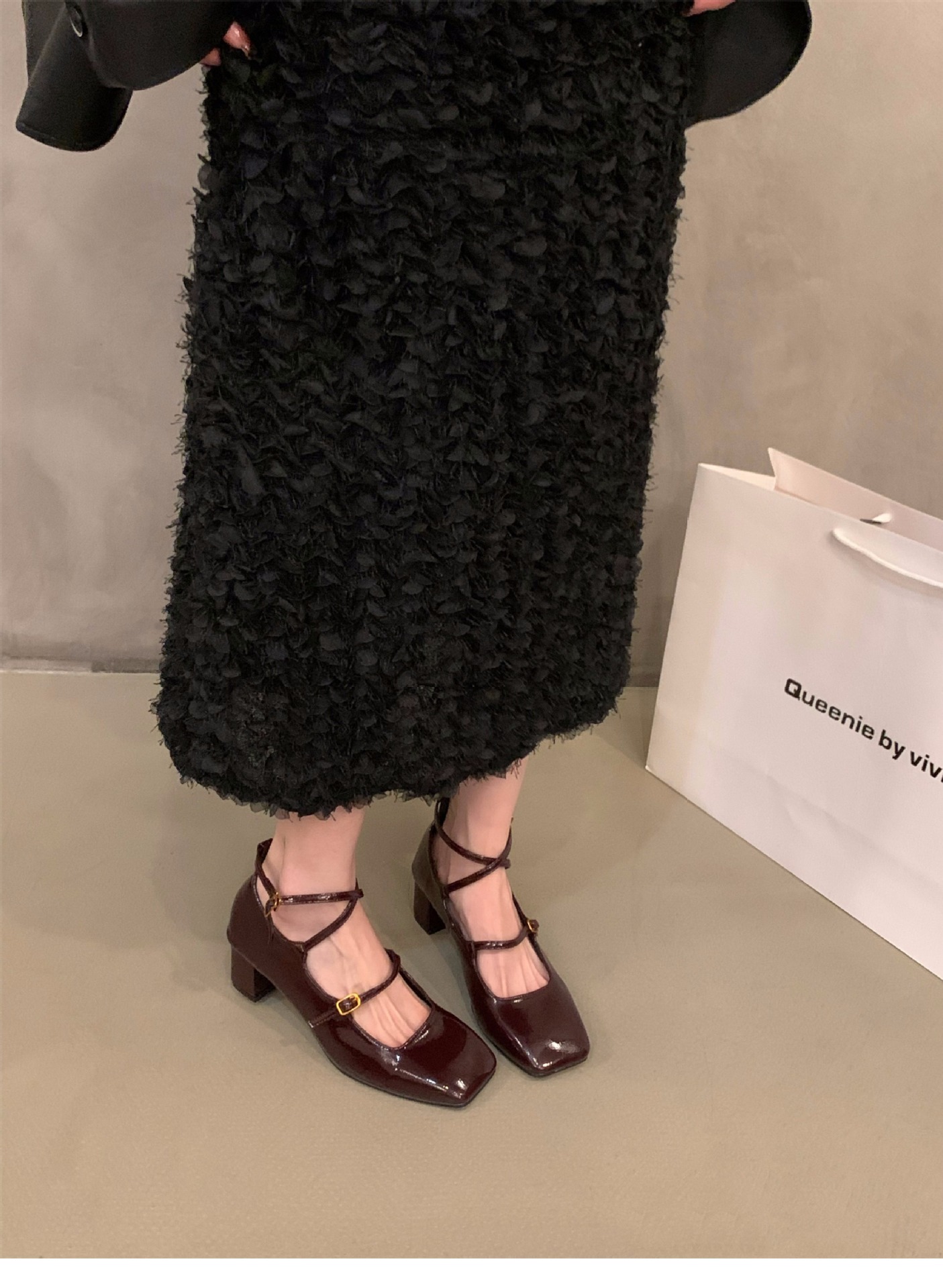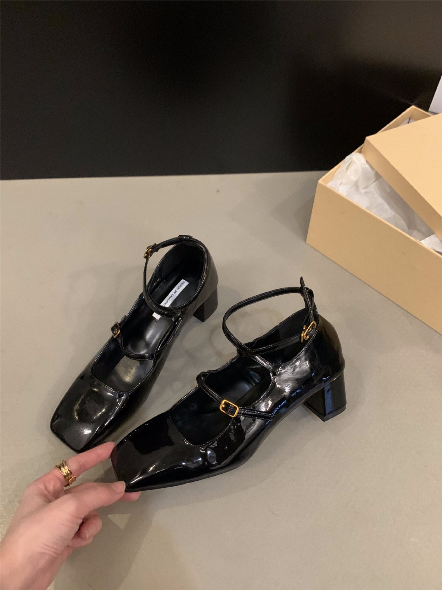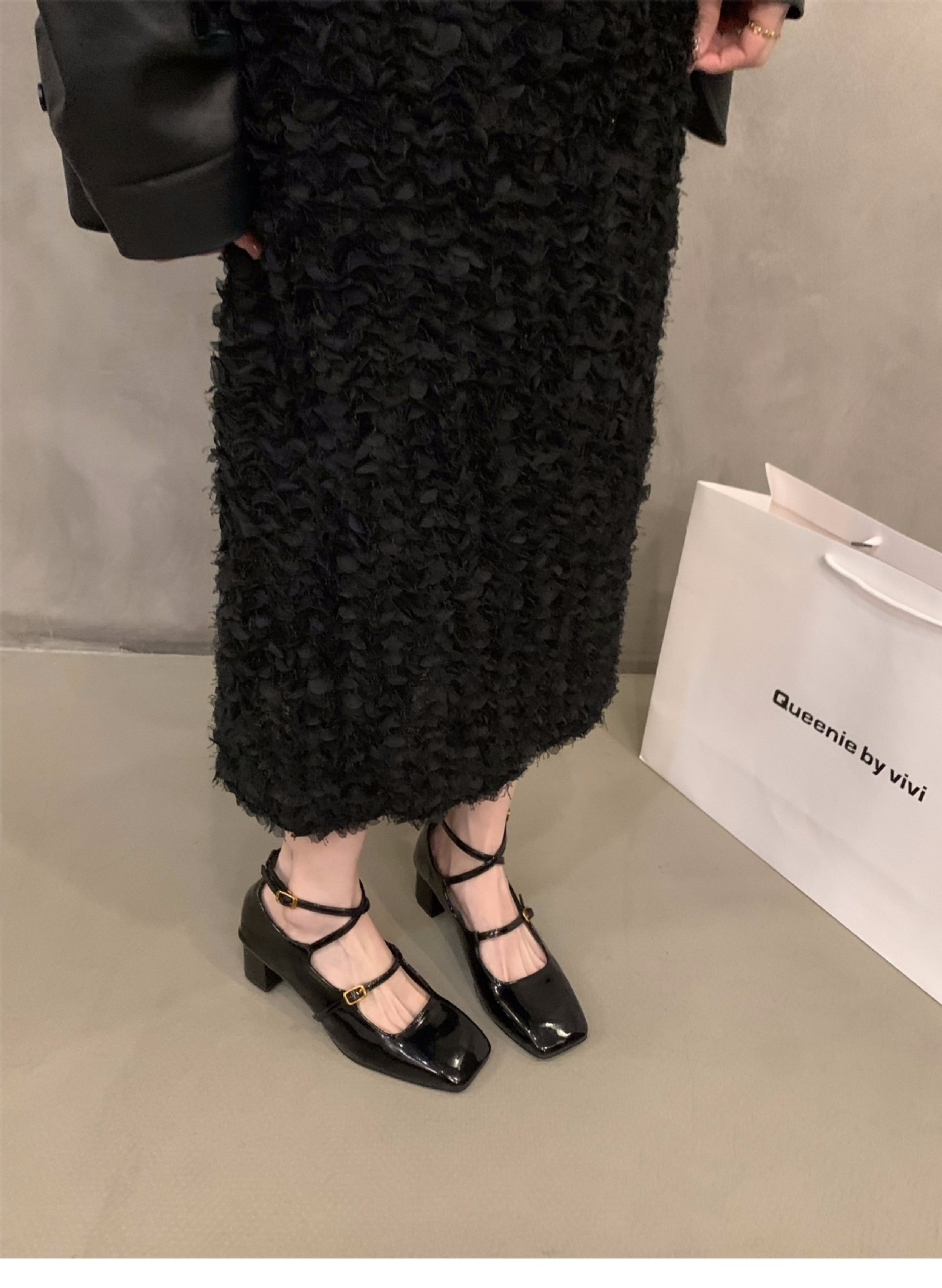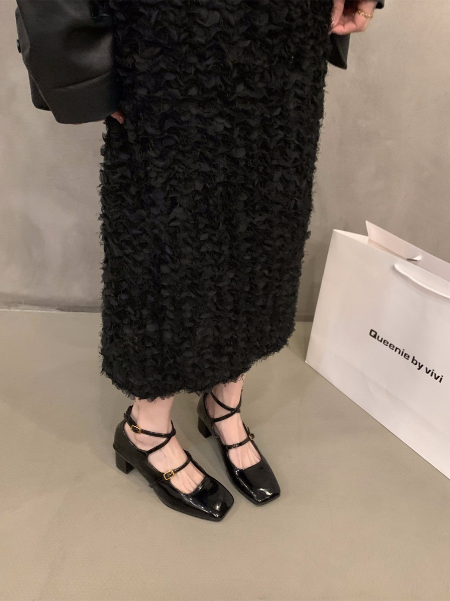 粗跟黑色方头玛丽珍单鞋女鞋子新款春秋冬季气质高跟鞋晚晚鞋