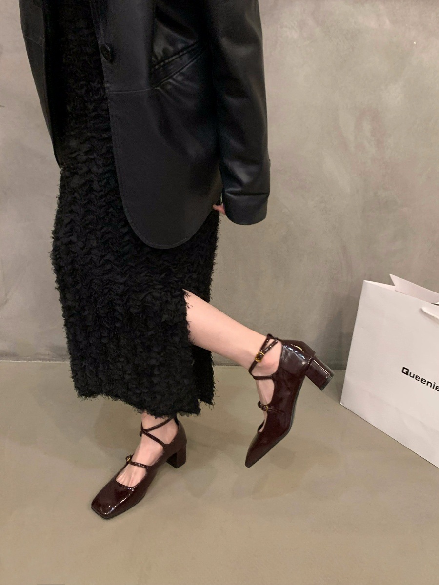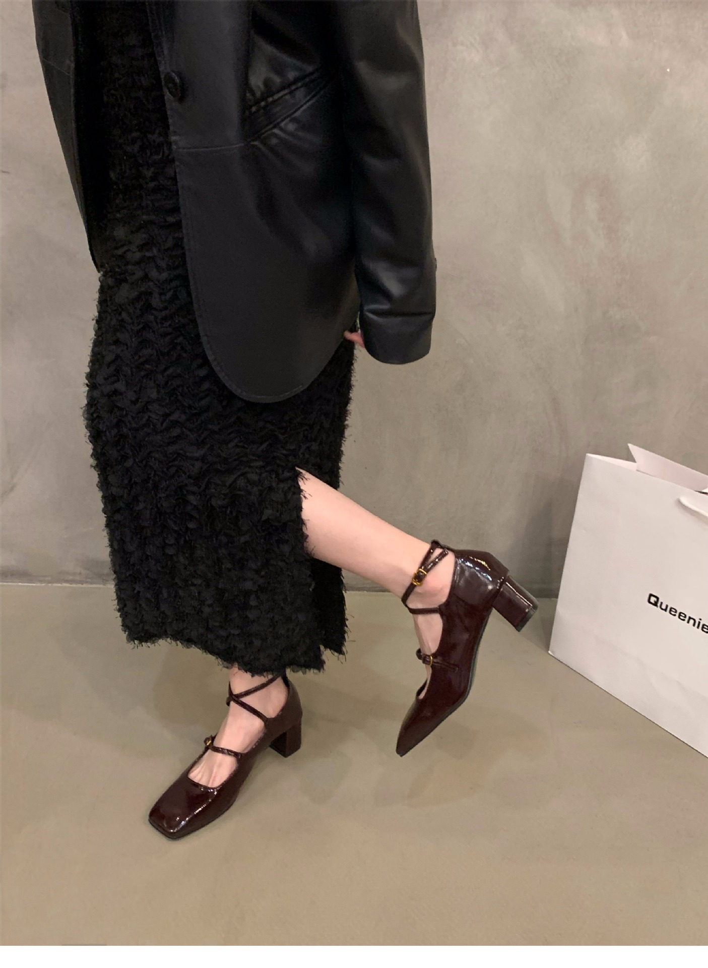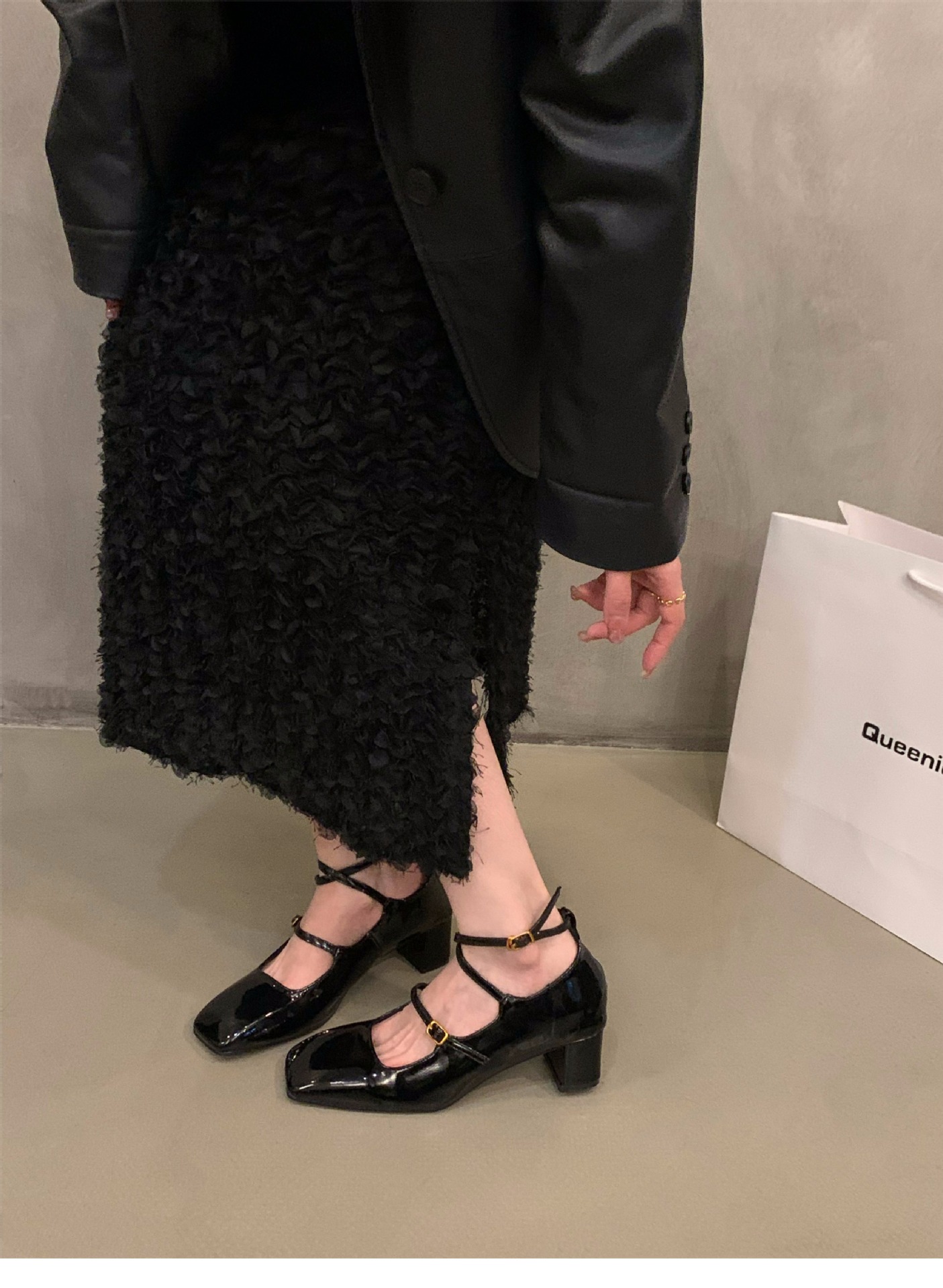 粗跟黑色方头玛丽珍单鞋女鞋子新款春秋冬季气质高跟鞋晚晚鞋