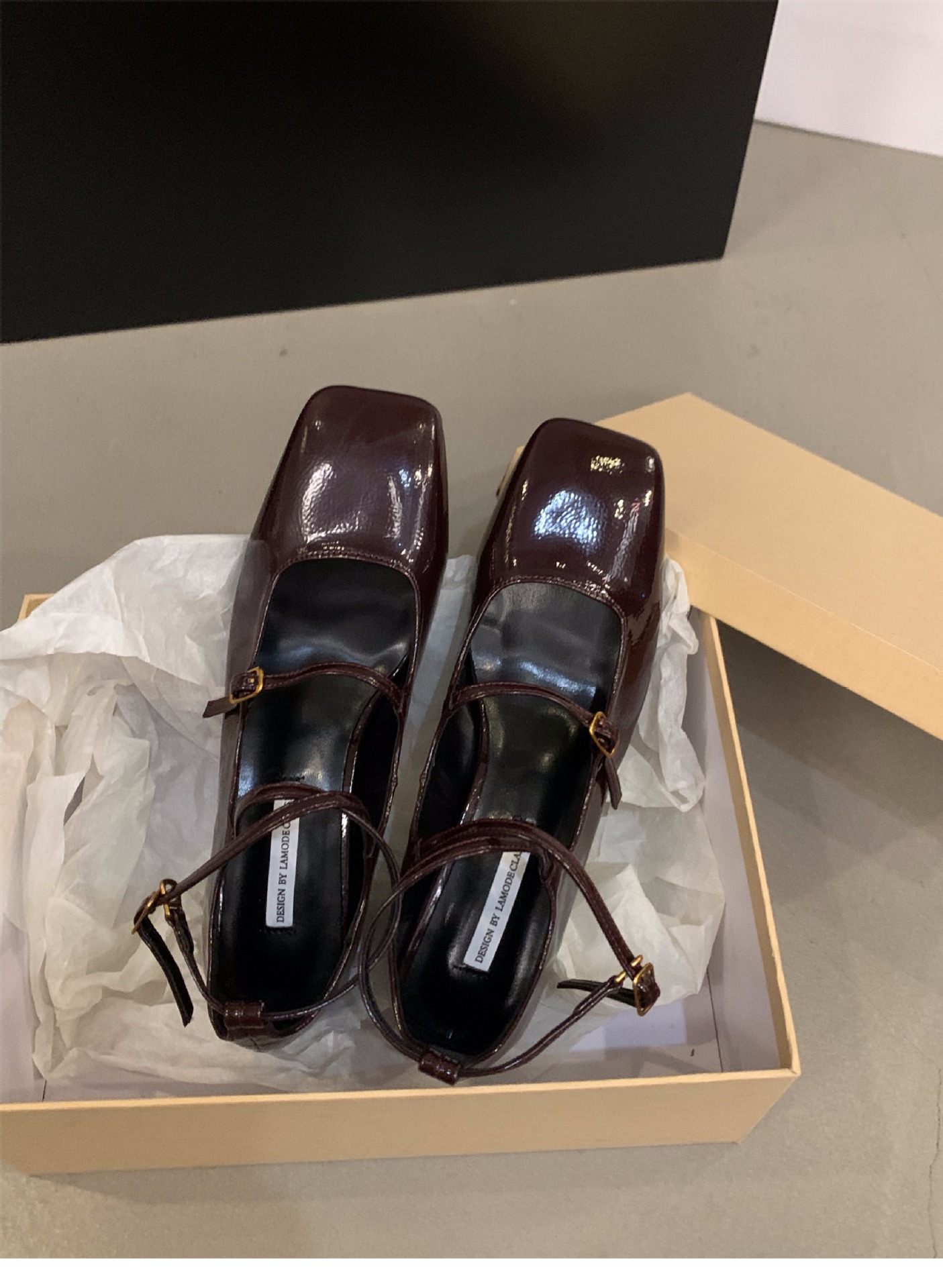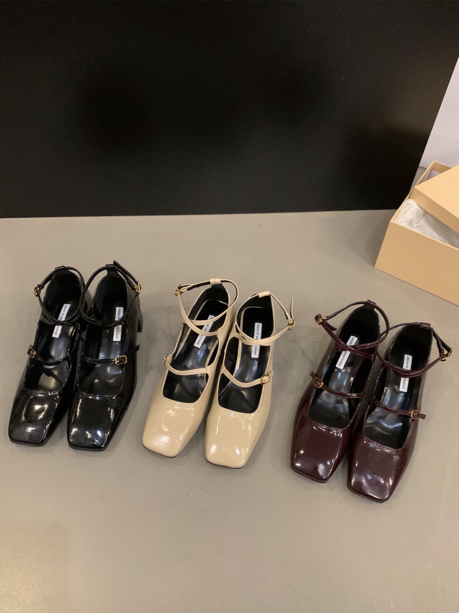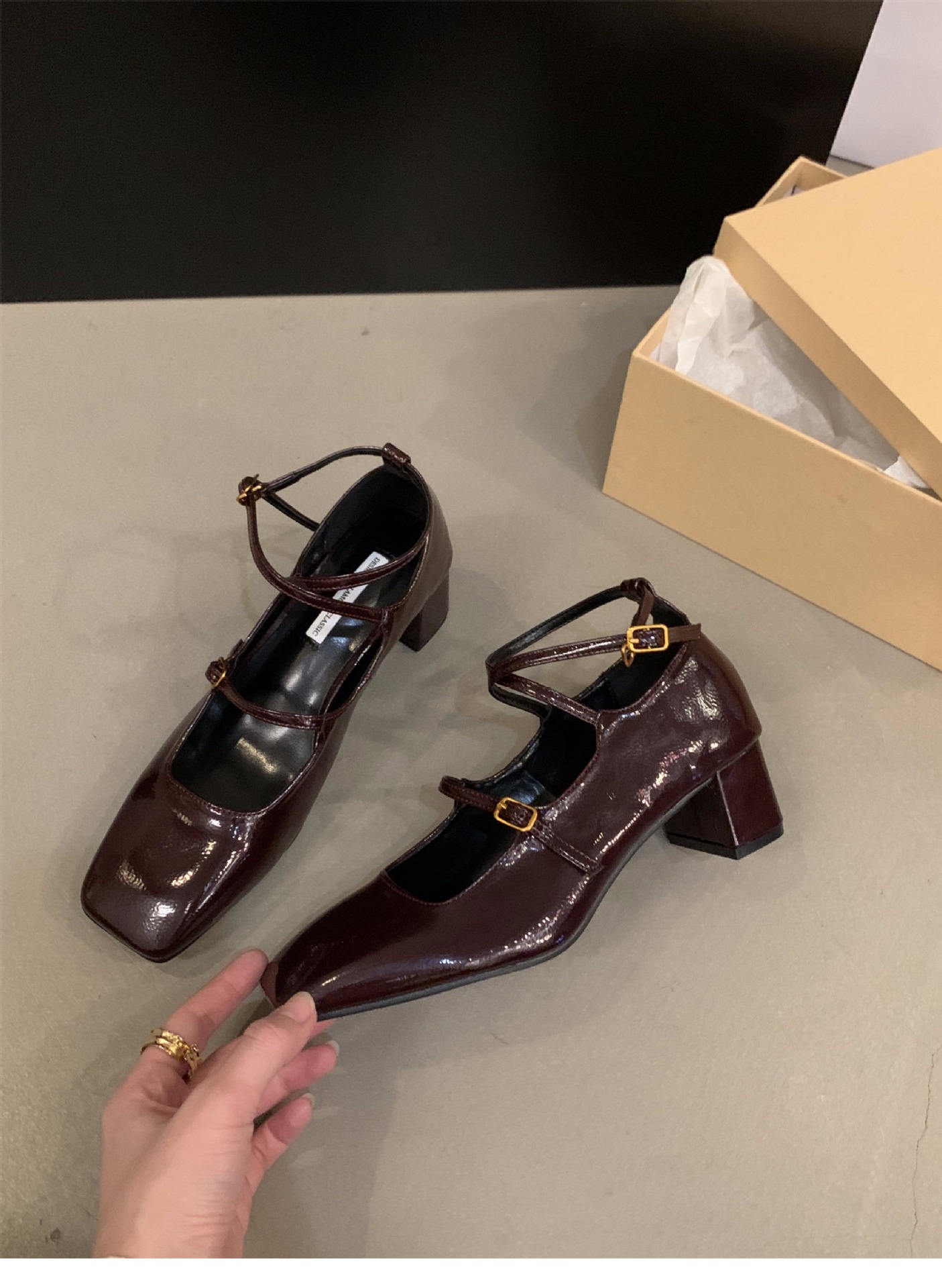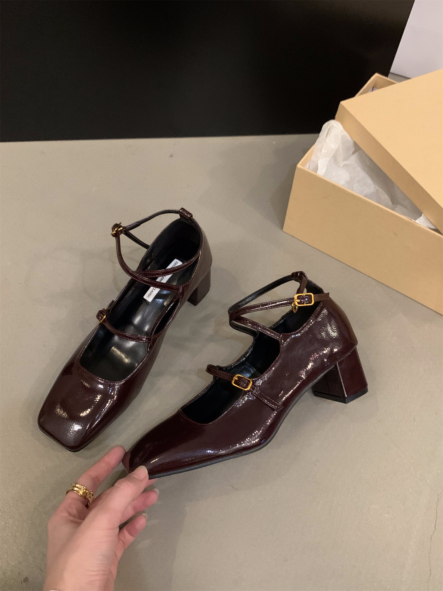 粗跟黑色方头玛丽珍单鞋女鞋子新款春秋冬季气质高跟鞋晚晚鞋
