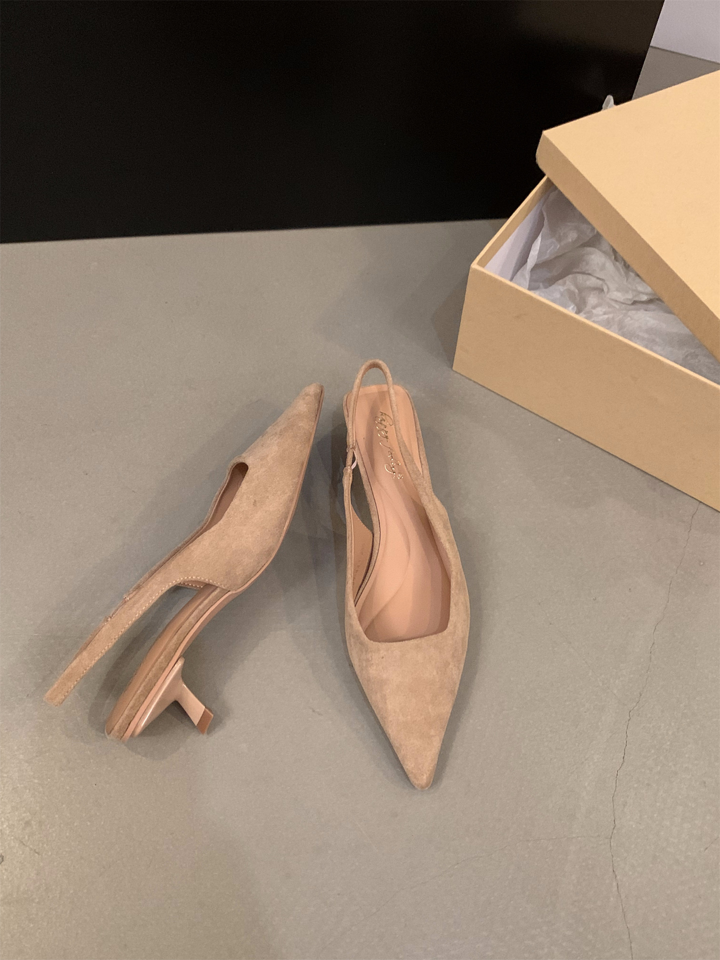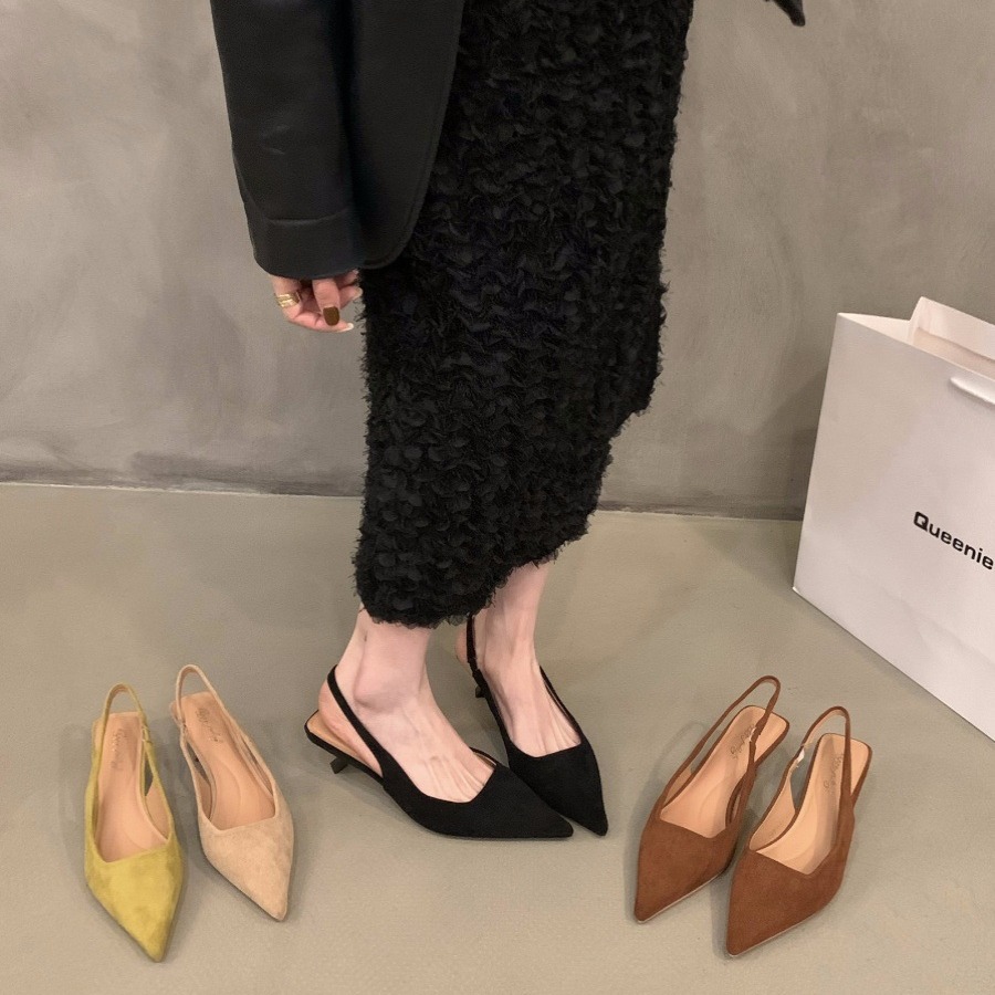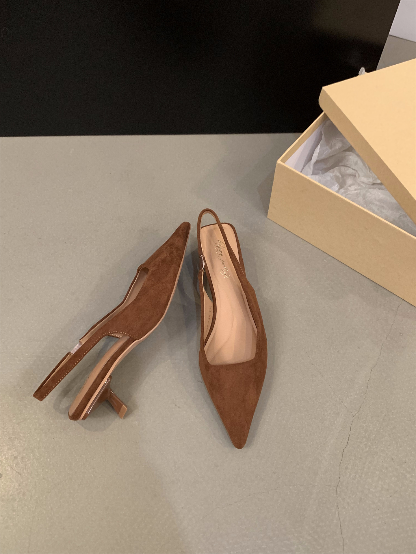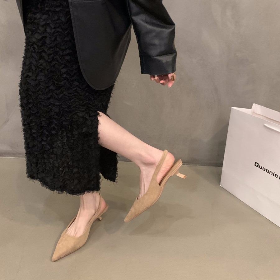 棕色复古高跟鞋包头凉鞋仙女鞋子年新款春夏季配裙子尖头单鞋
