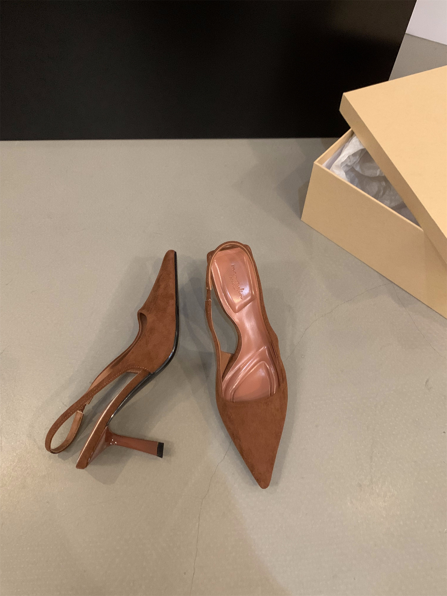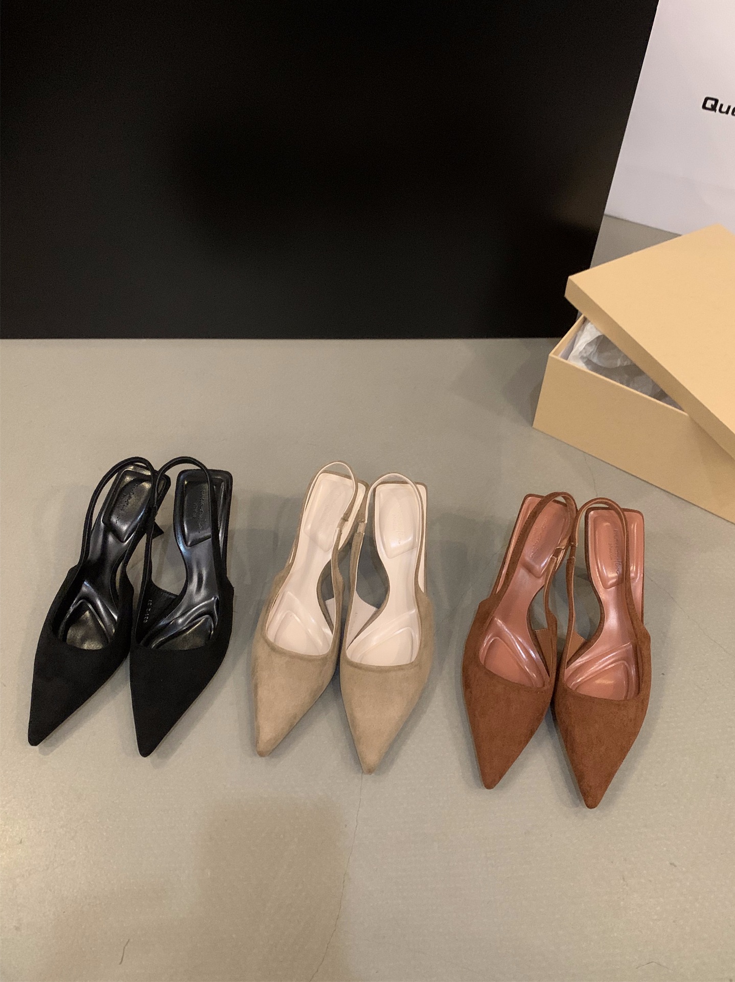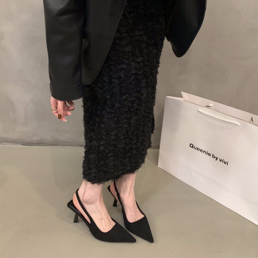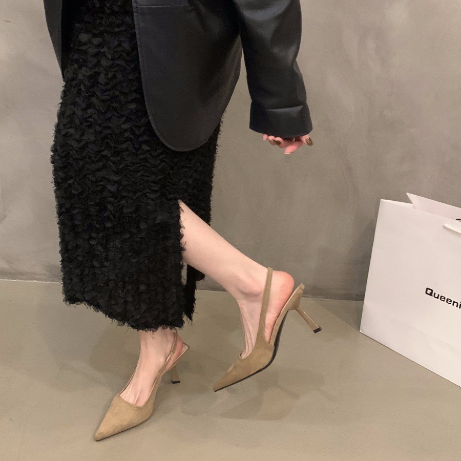 黑色气质名媛包头凉鞋仙女鞋子新款春夏季法式尖头高跟鞋单鞋