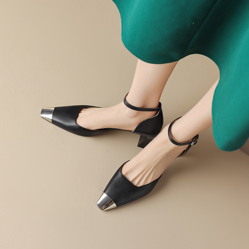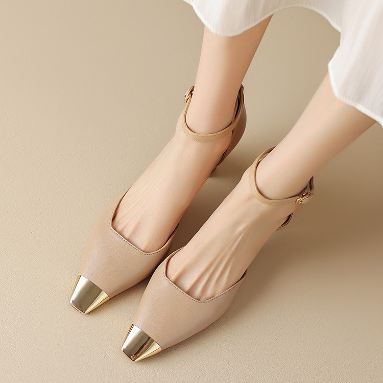 白色高跟鞋设计感小众不累脚法式方头一字扣中跟玛丽珍鞋裸色单鞋