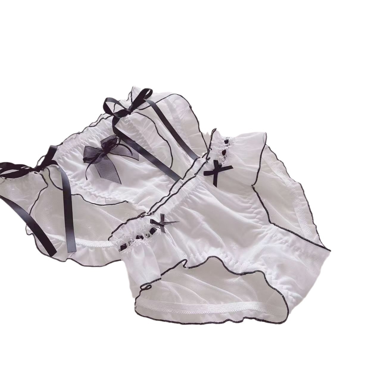 宝贝介绍:日系系带蕾丝内裤,低腰三角款,侧面系带,可以解开,前后片都是蕾丝飞边,少女心十足,。