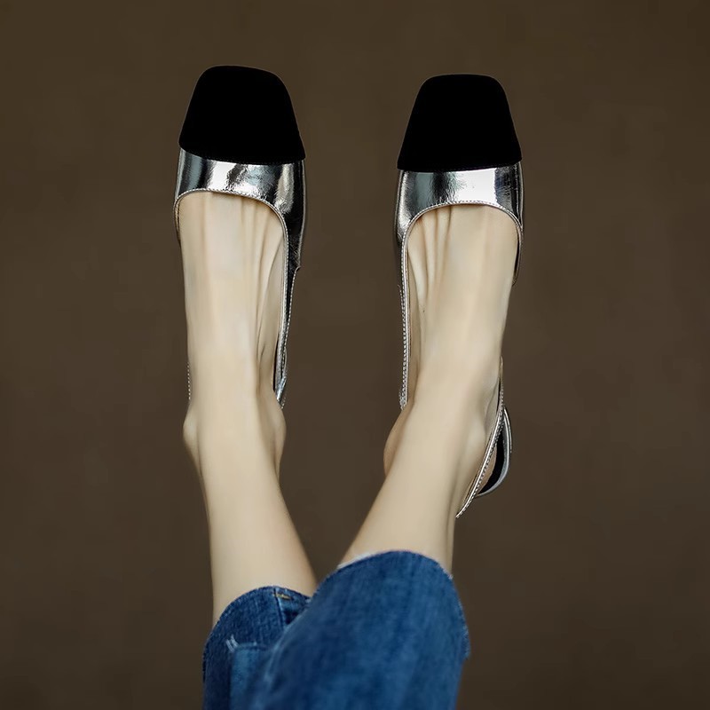 法式夏季新款小香风拼色单鞋百搭女鞋通勤包头罗马平底凉鞋女