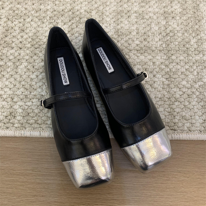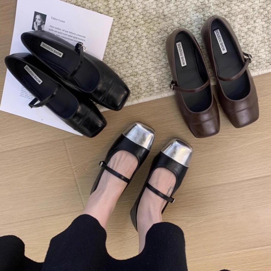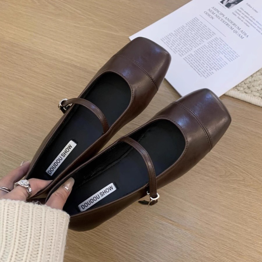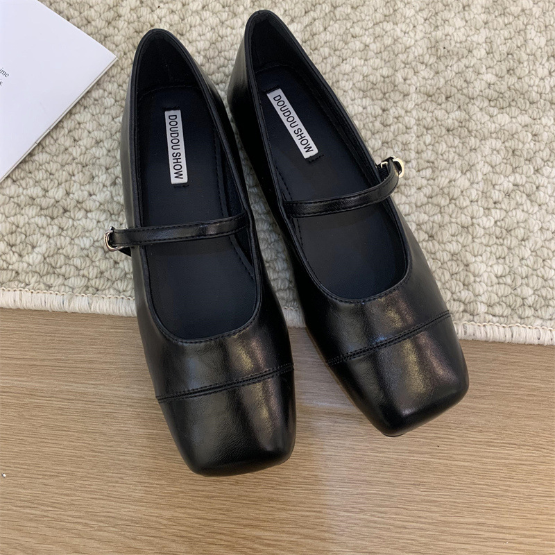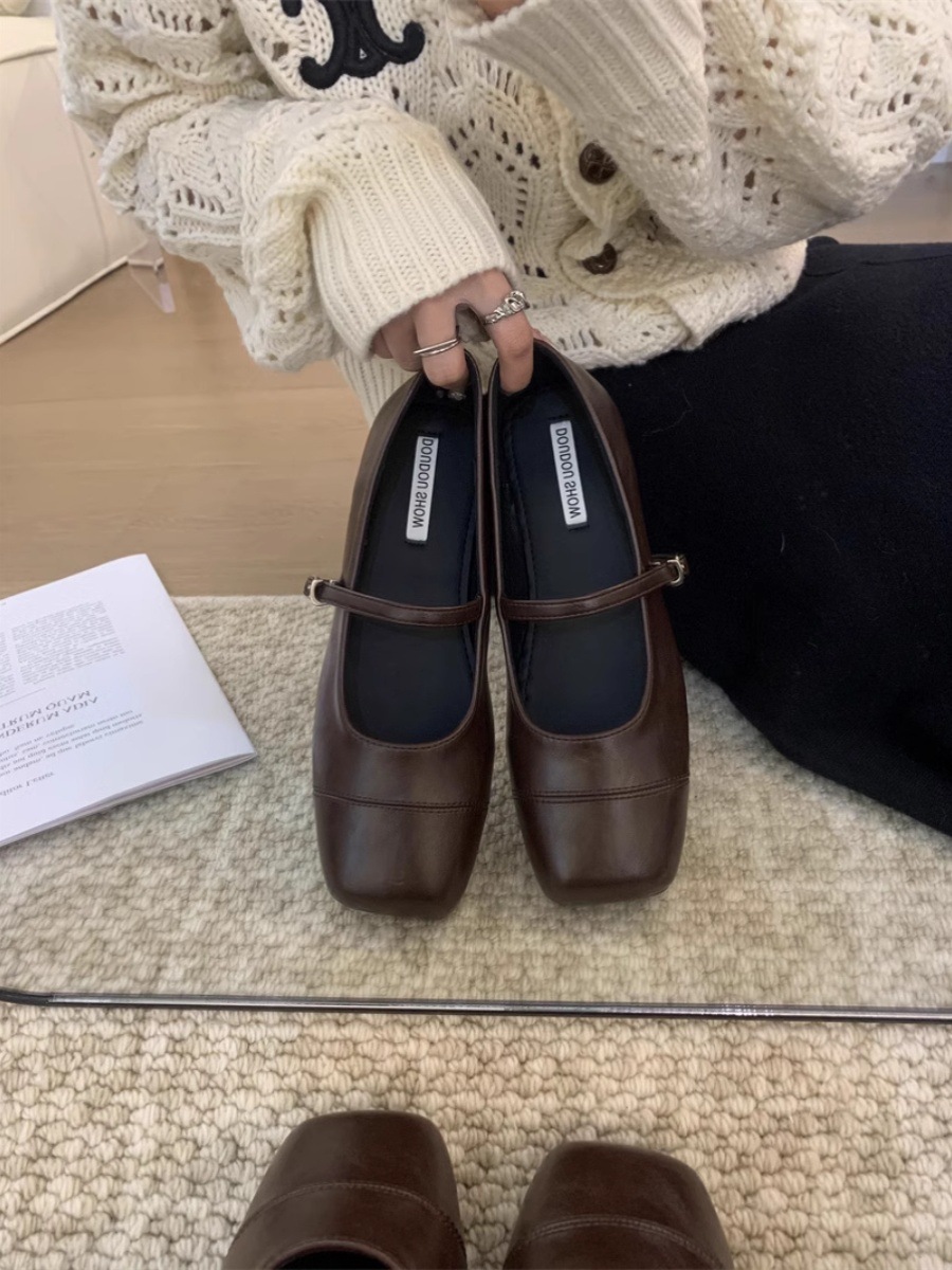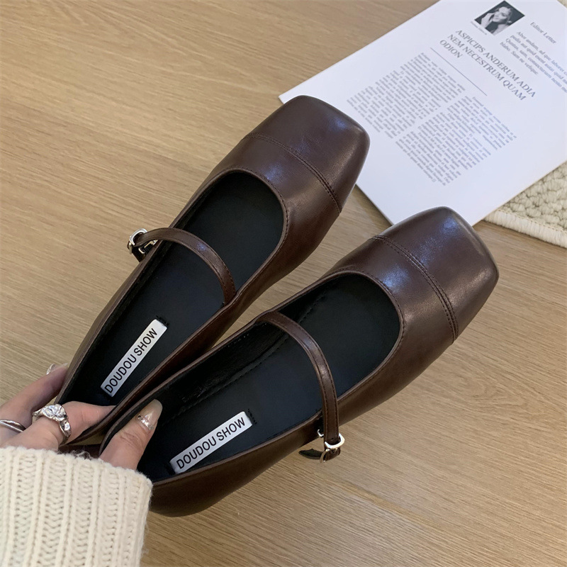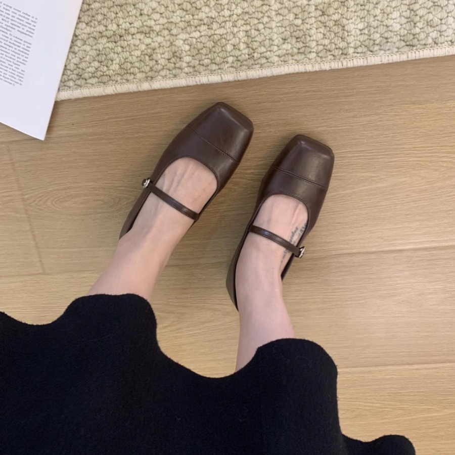 法式复古方头玛丽珍鞋女年秋季新款配裙子温柔一字带平底单鞋
