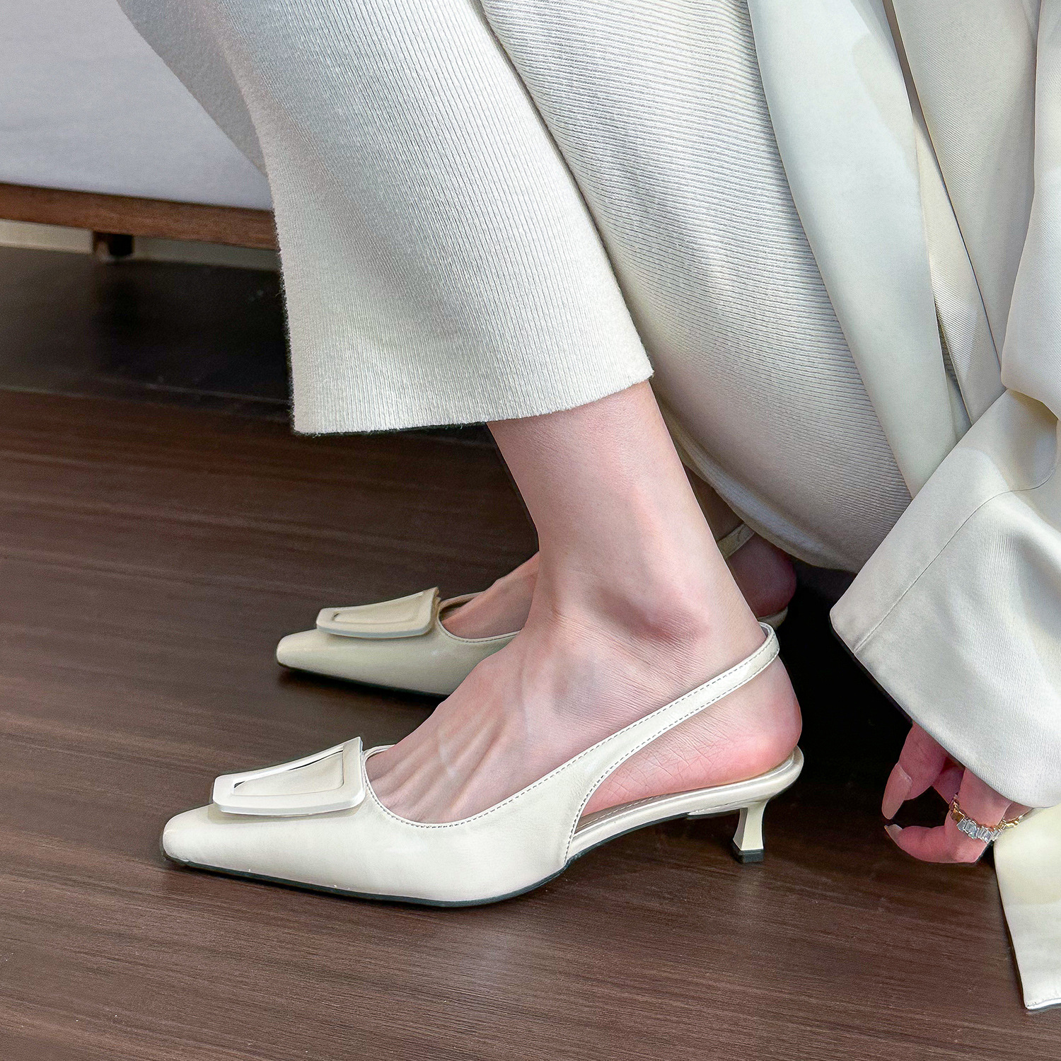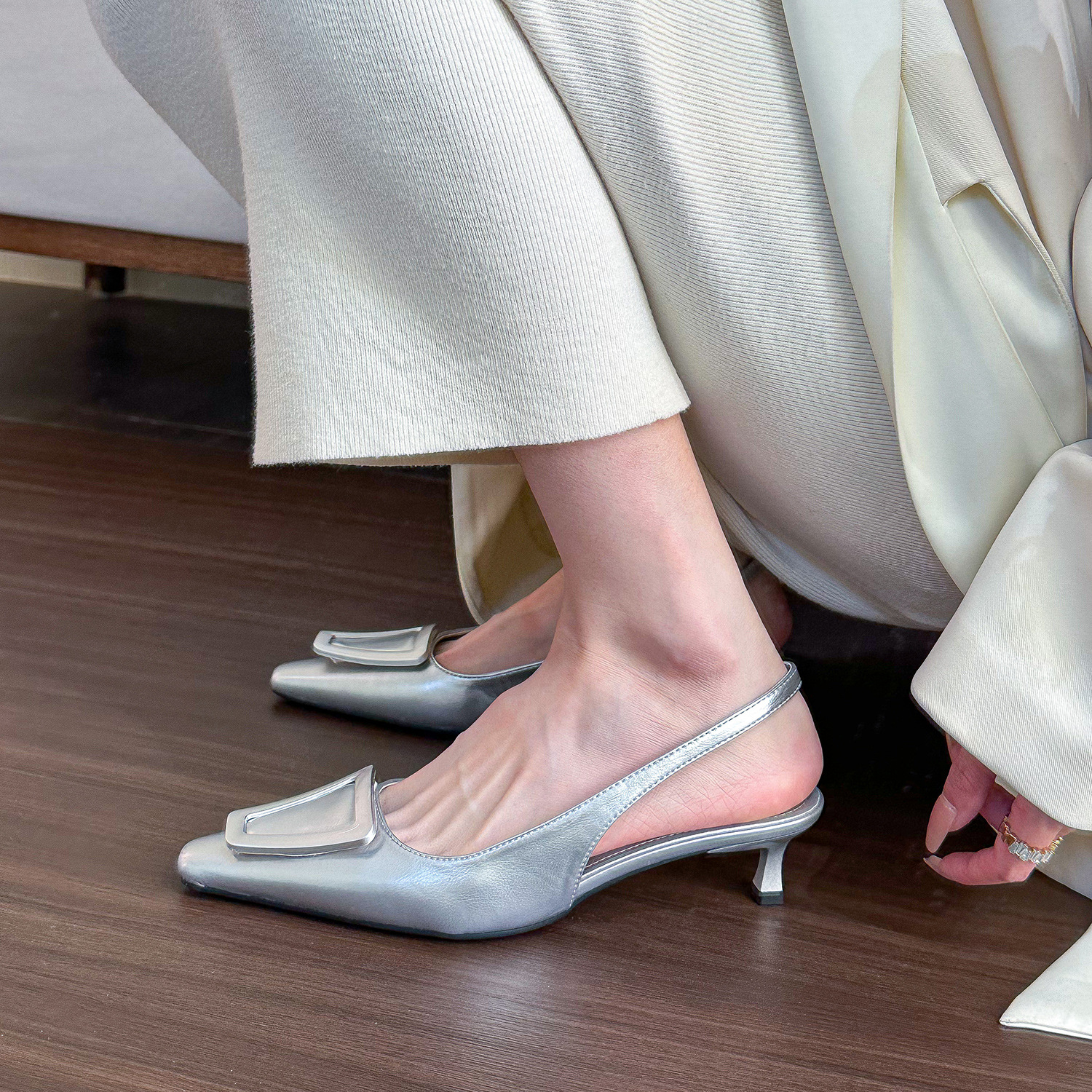 温柔百搭小方头后空凉鞋女春夏新款细跟小猫跟鞋