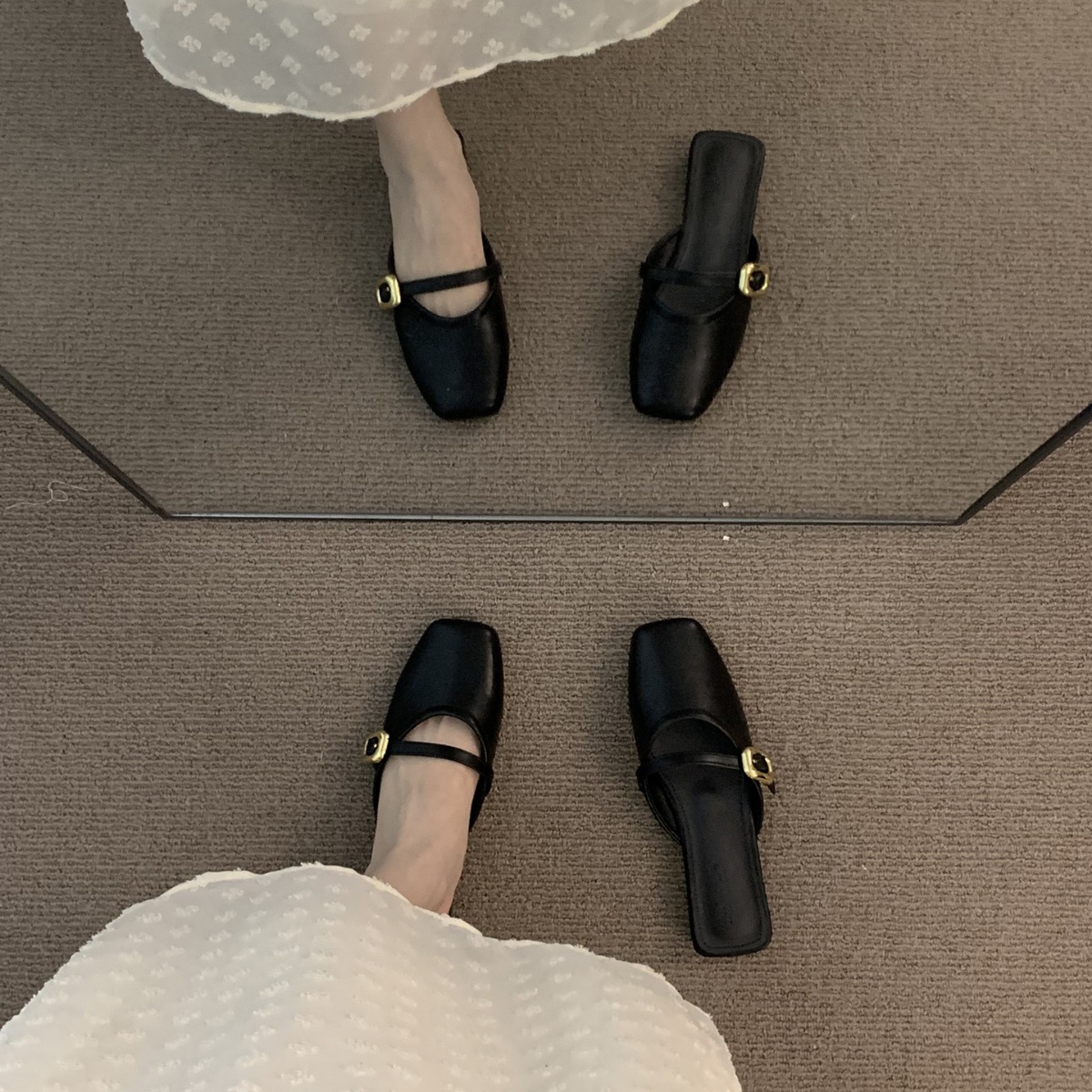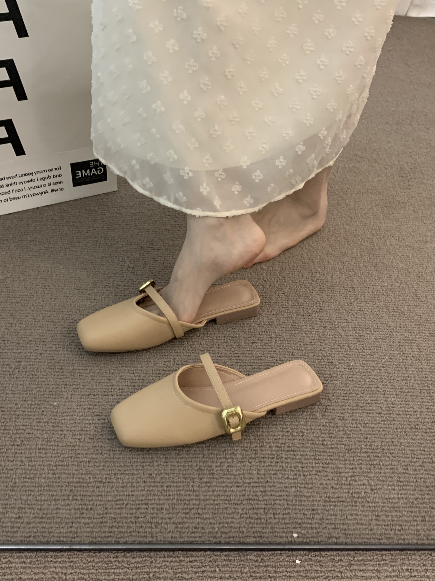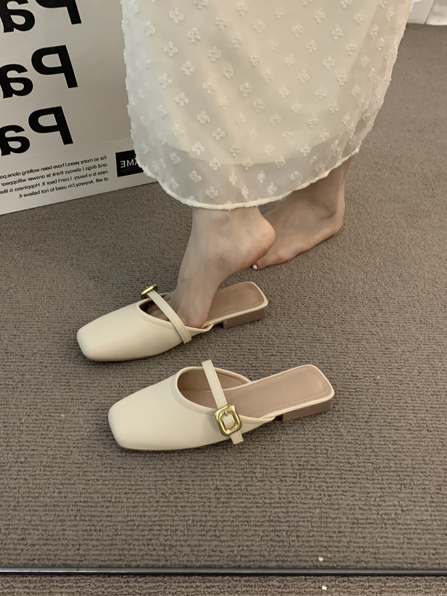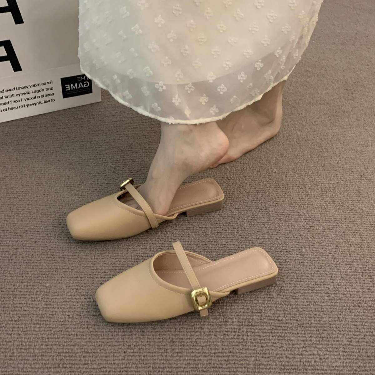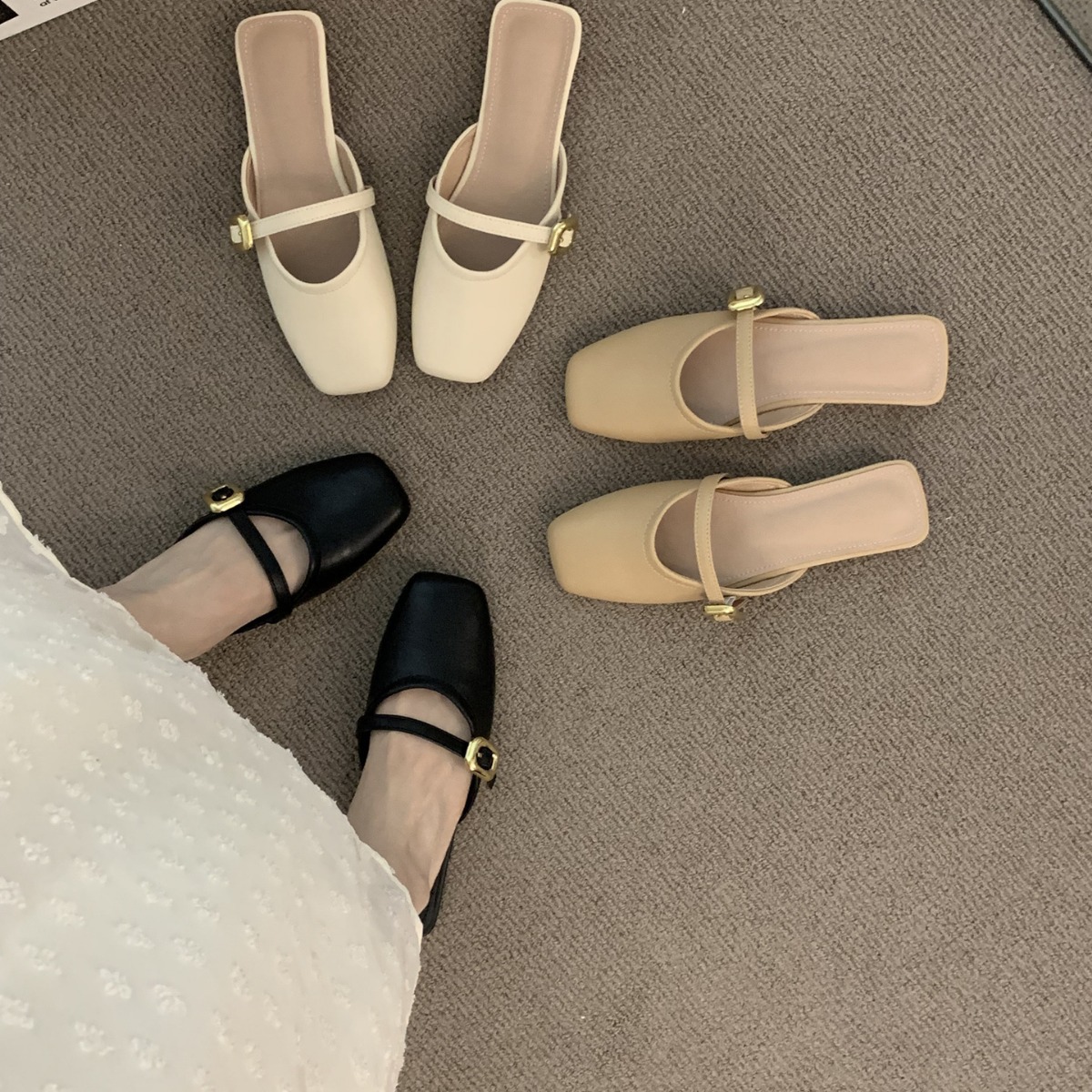 包头半拖鞋女夏外穿软底新款韩版法式晚风气质玛丽珍单鞋粗跟凉拖