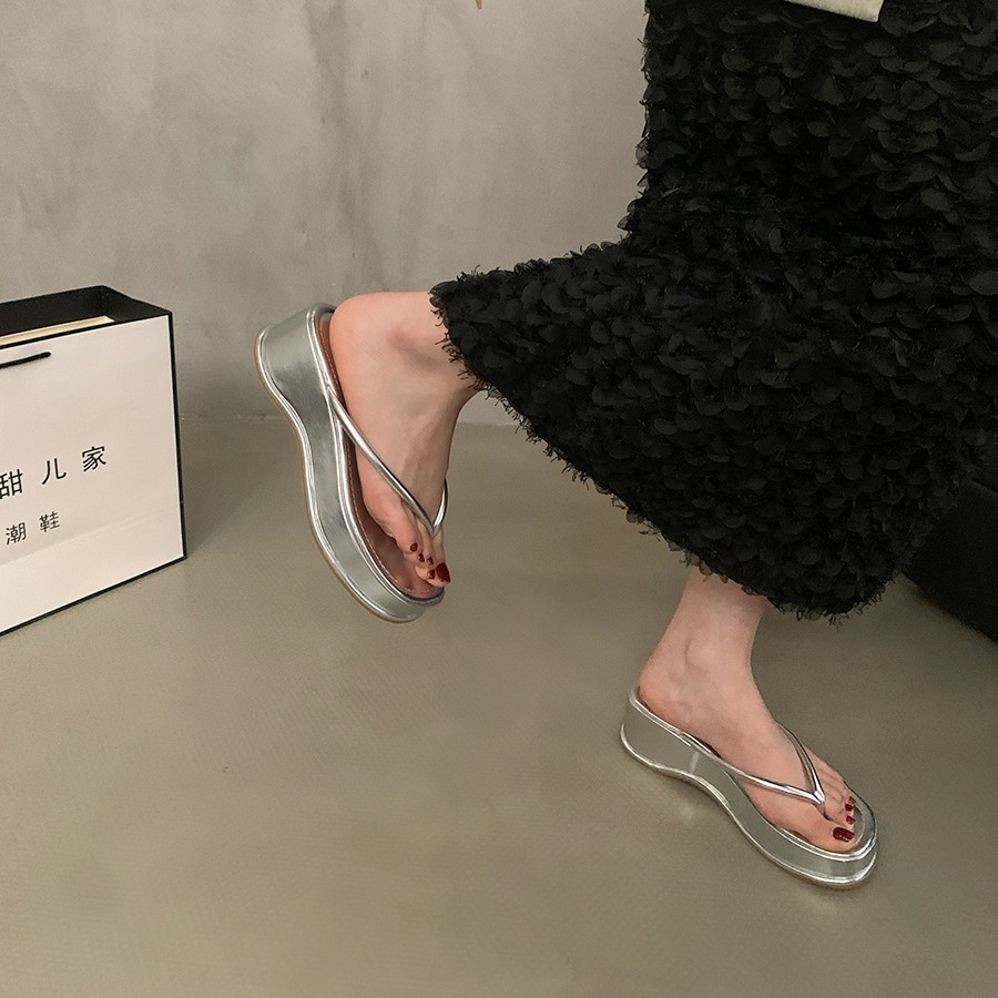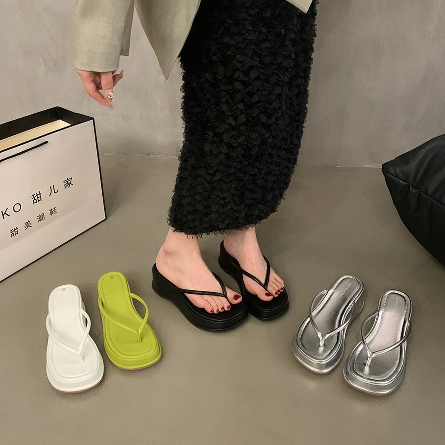 简约百搭夹脚人字拖鞋女鞋子年新款夏季增高厚底沙滩凉拖凉鞋
